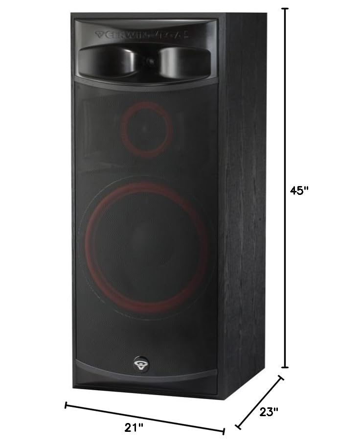 Product Descriptionas Part Of Cerwin-Vega'S Classic Series, The Xls-15 Offers Three-Way Performance In A Stylish Enclosure, Featuring A 15-Inch Cast Frame High Excursion Woofer, A 6.5-Inch Mid-Range Speaker, And A 1-Inch Soft Dome Tweeter Coupled To A Proprietary Mid- And High-Frequency Waveguide.From The Manufacturercerwin-Vega Xls-15 3-Way Home Audio Floor Tower Speakerthe Popular Tower In The Classic Series, The Xls-15 Offers Three-Way Performance In A Stylish Enclosure. Featuring A 15-Inch Cast Frame High Excursion Woofer, A 6.5-Inch Mid-Range Speaker, And A 1-Inch Soft Dome Tweeter Coupled To A Proprietary Mid And High Frequency Waveguide. Enjoy Amazing Audio Performance With A 3-Way System Designed To Deliver Lifelike Audio And Faithful Sound Reproduction. Specifications 1'' Soft Dome Tweeter With Ferro Fluid 6.5'' Mid-Range With Fiber Impregnated Cone 15'' Cast Frame High Excursion Woofer Proprietary Mid And High Frequency Waveguide Fuse Protection Elegant Black-Ash Enclosure Performance Data Frequency Response: 38 Hz - 20 Khz (-3 Db), 36 Hz - 20 Khz (-10 Db) Power Capacity: 400 Watts (Peak) Sensitivity: In Spl: 92.3 Db (@ 8 Ohms @ 1 Meter Full) Impedance: 6 Ohms Crossover Frequencies: 280 Hz / 2.4 Khz Weight: 85 Lb. / 38.5 Kg Dimensions (Hxwxd): 40.6'' X 17'' X 18.5'' (1030 Mm X 430 Mm X 470 Mm) Similar Products To Considercerwin-Vega Xls-15S Powered Subwoofer (Each, Black)Cerwin-Vega Xls-15S Front Firing 15'' Powered Subwoofer For The Serious Bass Enthusiast Who Wants Room-Jarring Low Frequency.Cerwin-Vega Xls-12 3-Way Home Audio Floor Tower Speaker (Each, Black)The Most Popular Tower In The Classic Series, The Cerwin-Vega Xls-12 Offers Three-Way Performance In A Stylish Enclosure.Cerwin-Vega Xls-28 Dual 3-Way Home Audio Floor Tower Speaker (Each, Black)The Most Popular Tower In The Classic Series, The Cerwin-Vega Xls-28 Offers Three-Way Performance In A Stylish Enclosure.