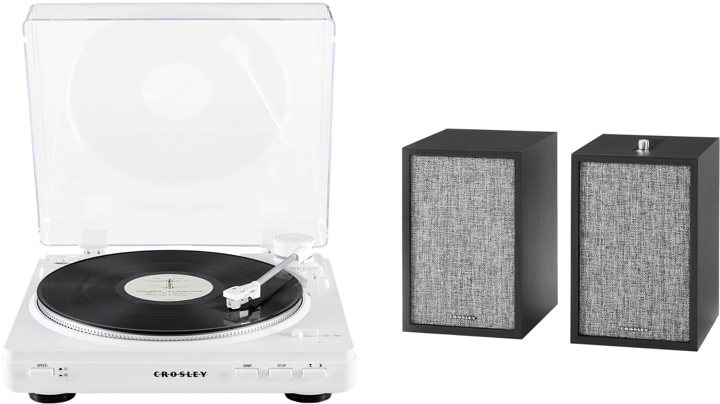 Crosley Kt400B-Wh Fully Automatic Bluetooth 2-Speed Turntable Record Player With S200A Stereo Speakers, White