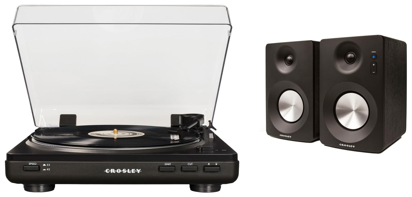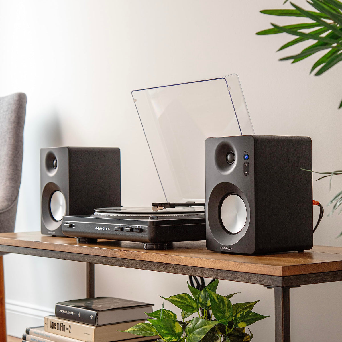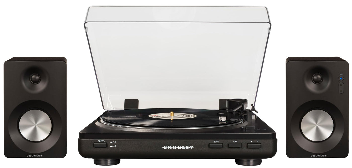 Crosley T400D-Bk Fully Automatic Bluetooth 2-Speed Turntable Record Player With S100A Stereo Speakers, Black