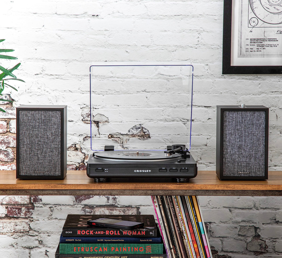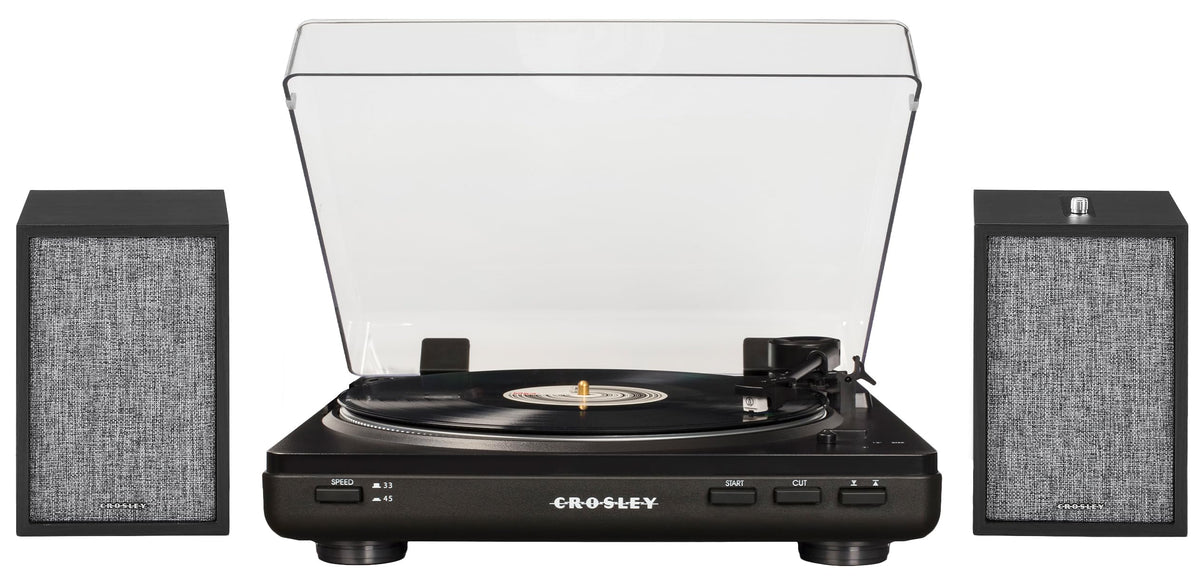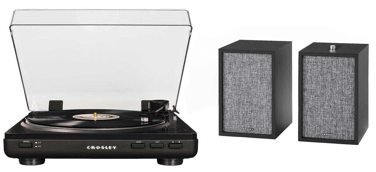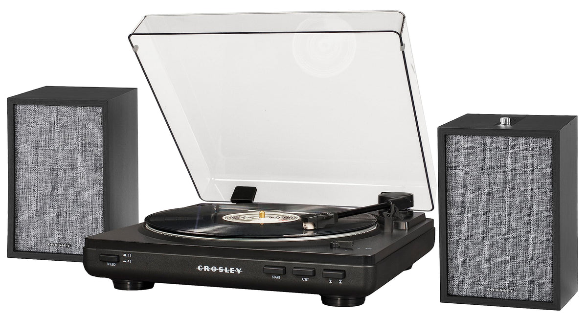 Crosley T400D-Bk Fully Automatic Bluetooth 2-Speed Turntable Record Player With S200A Stereo Speakers, Black