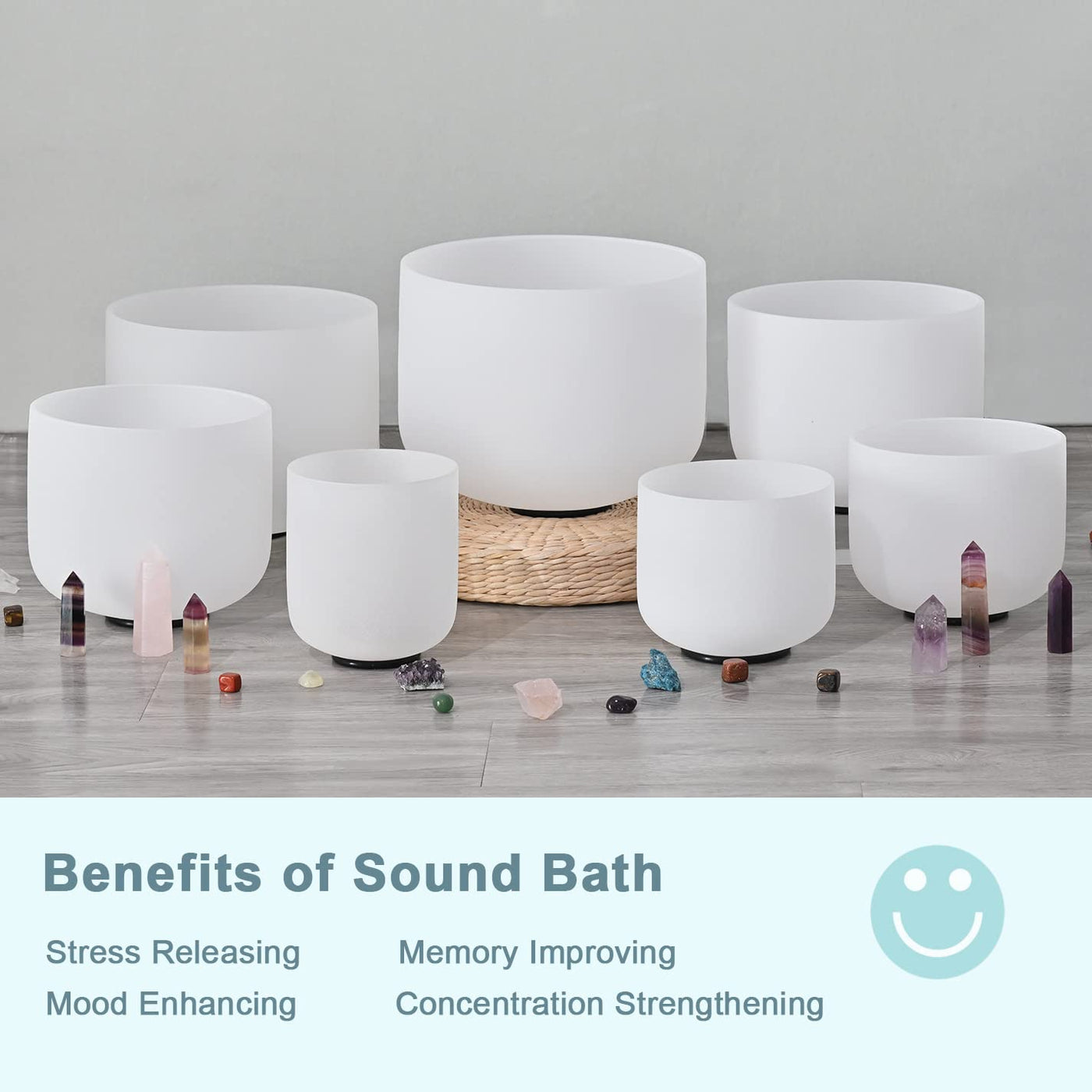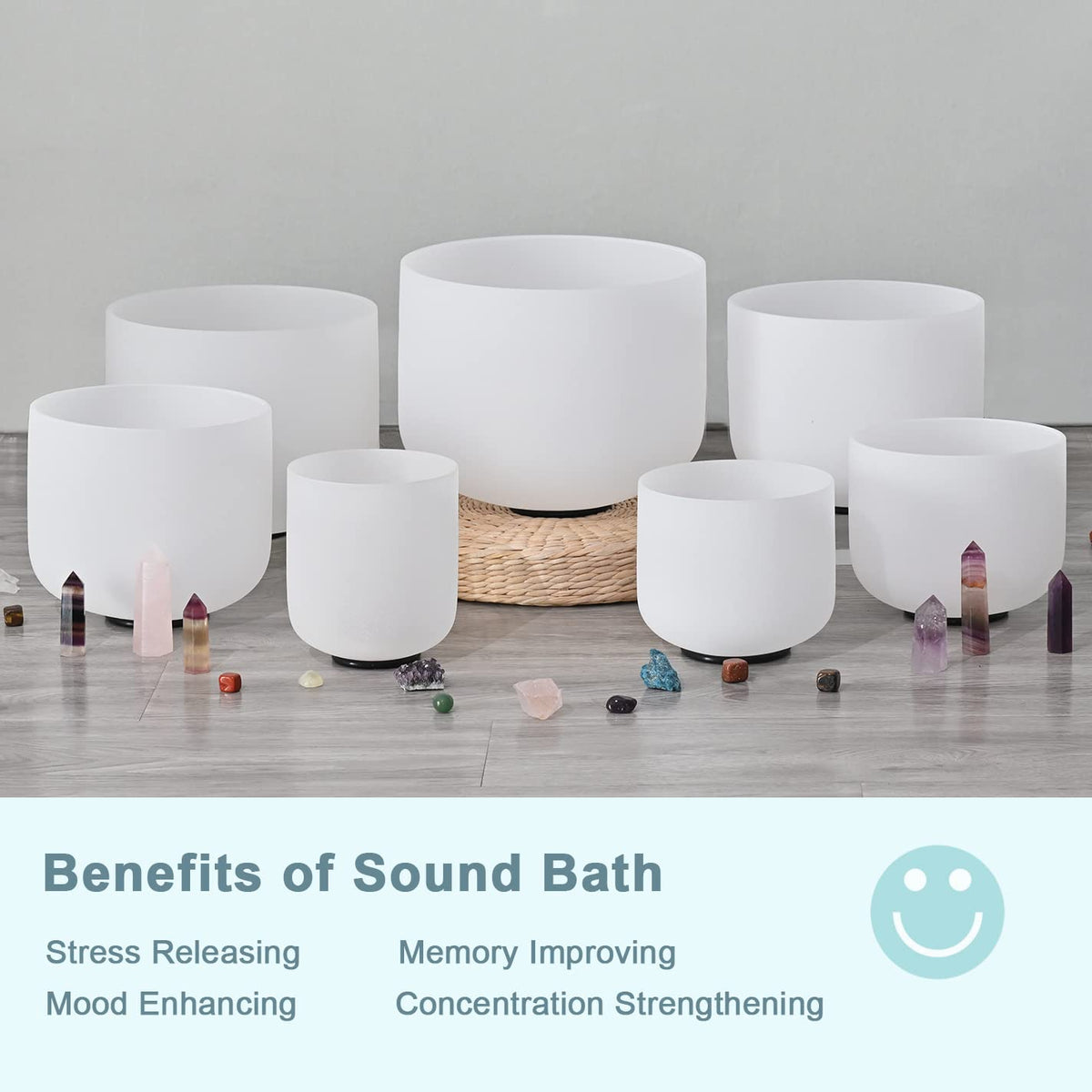 Cvnc 432Hz 7 12 Inch Set Of 7 Pcs Frosted Quartz Crystal Singing Bowls With 2 Pcs Carrying Case Bag Sound Healing