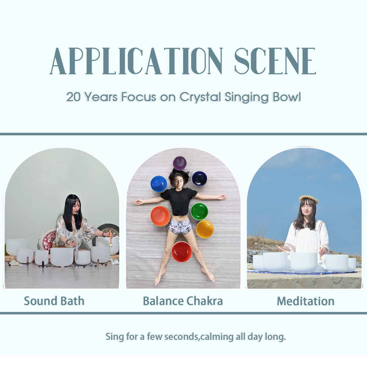 Features: 1.The Sound And Frequency Of 7-12 Inch Crystal Singing Bowl Set Benefits At Every Atom & Every Cell. 2.Crystal Singing Bowl Set--432Hz Crystal Singing Bowl*7(12''C 11''D 10''E 9''F 7''G 8''A 7''B), Padded Case Bag*2, Suede Stick*2, Rubber Mallet*2, O-Ring*7. 3.We Will Replace By Free If There Is Any Damage Or Missing During The Transportation. Material: Over 99.99% Pure American Quartz Crystal Item Size: 7-12 Inch Condition: 100% New