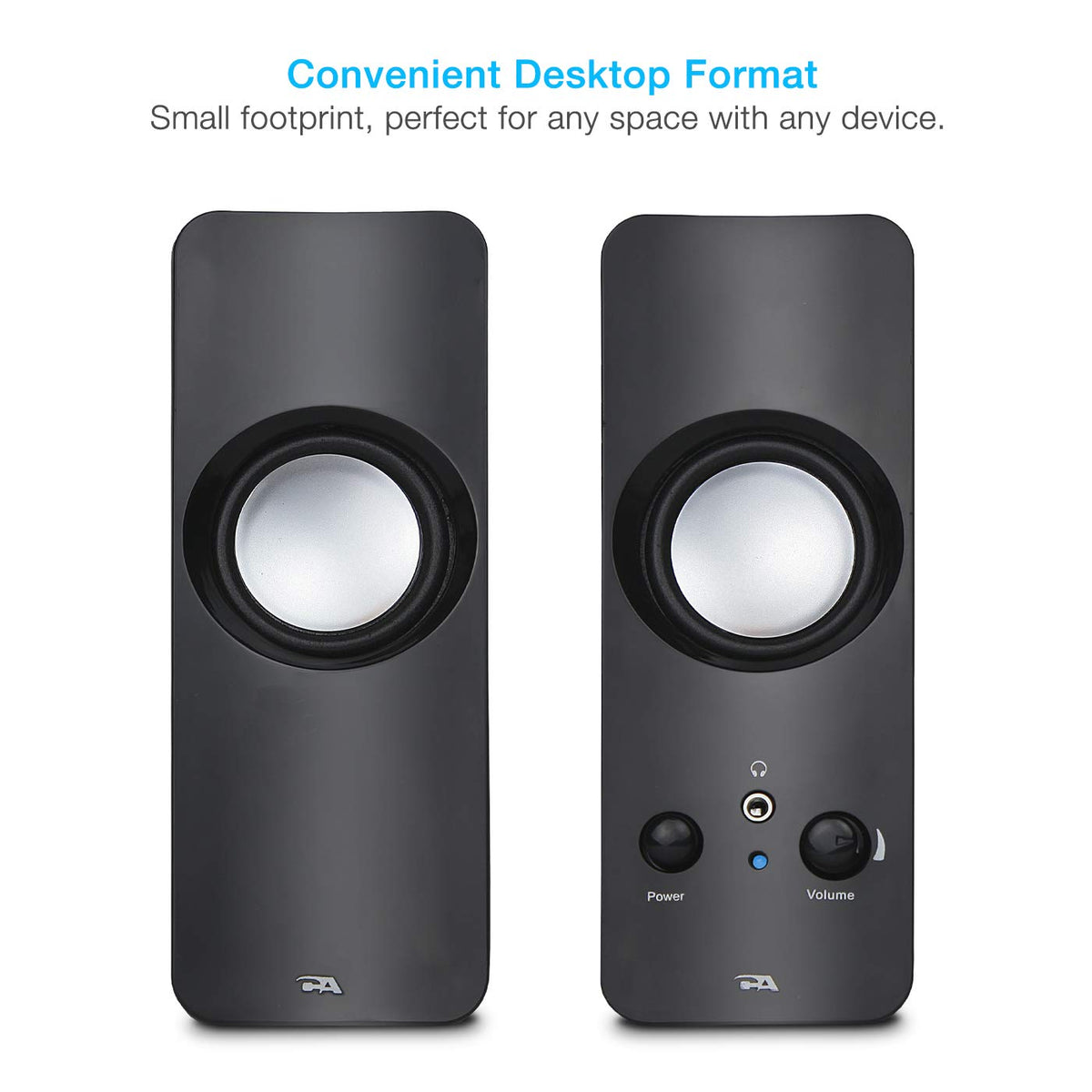 Cyber Acoustics Ca 2050 2.0 Speaker System, 3.5Mm Stereo Multimedia Desktop Computer Speaker, Separate Headphone Output, Volume
