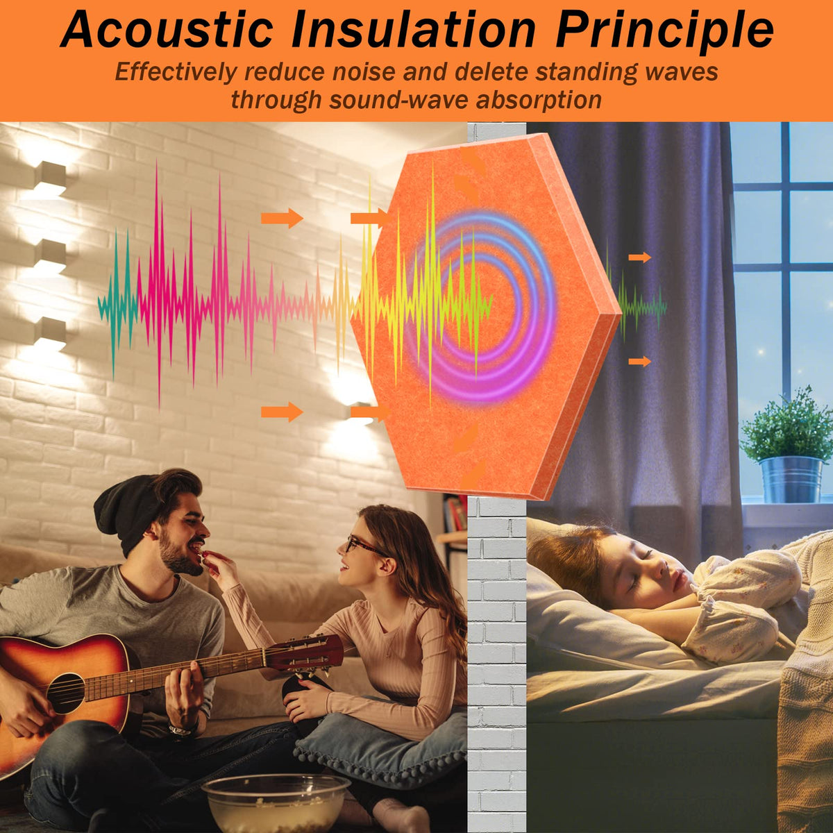 The Hexagon Acoustic Panels Are A Set Of High-Quality Sound-Absorbing Foam Panels Designed To Improve Sound Quality In Your Home Recording Studio, Office, Or Other Acoustic Space. Each Panel Measures 10'' X 10'' X 0.4'' And Is Made Of Self-Adhesive Soundproof Foam, Which Makes Installation Quick And Easy. The Hexagon Shape Of The Panels Adds A Modern And Stylish Touch To Your Space While Serving A Functional Purpose. These Soundproofing Panels Are Ideal For Reducing Echo And Unwanted Noise, Creating A More Professional And Enjoyable Listening Experience. The Pack Of 12 Ensures That You Have Enough Panels To Cover A Large Surface Area, Giving You The Flexibility To Customize The Placement And Configuration Of The Panels For Maximum Effect. Upgrade Your Acoustic Environment With These Versatile And Effective Soundproof Foam Panels.