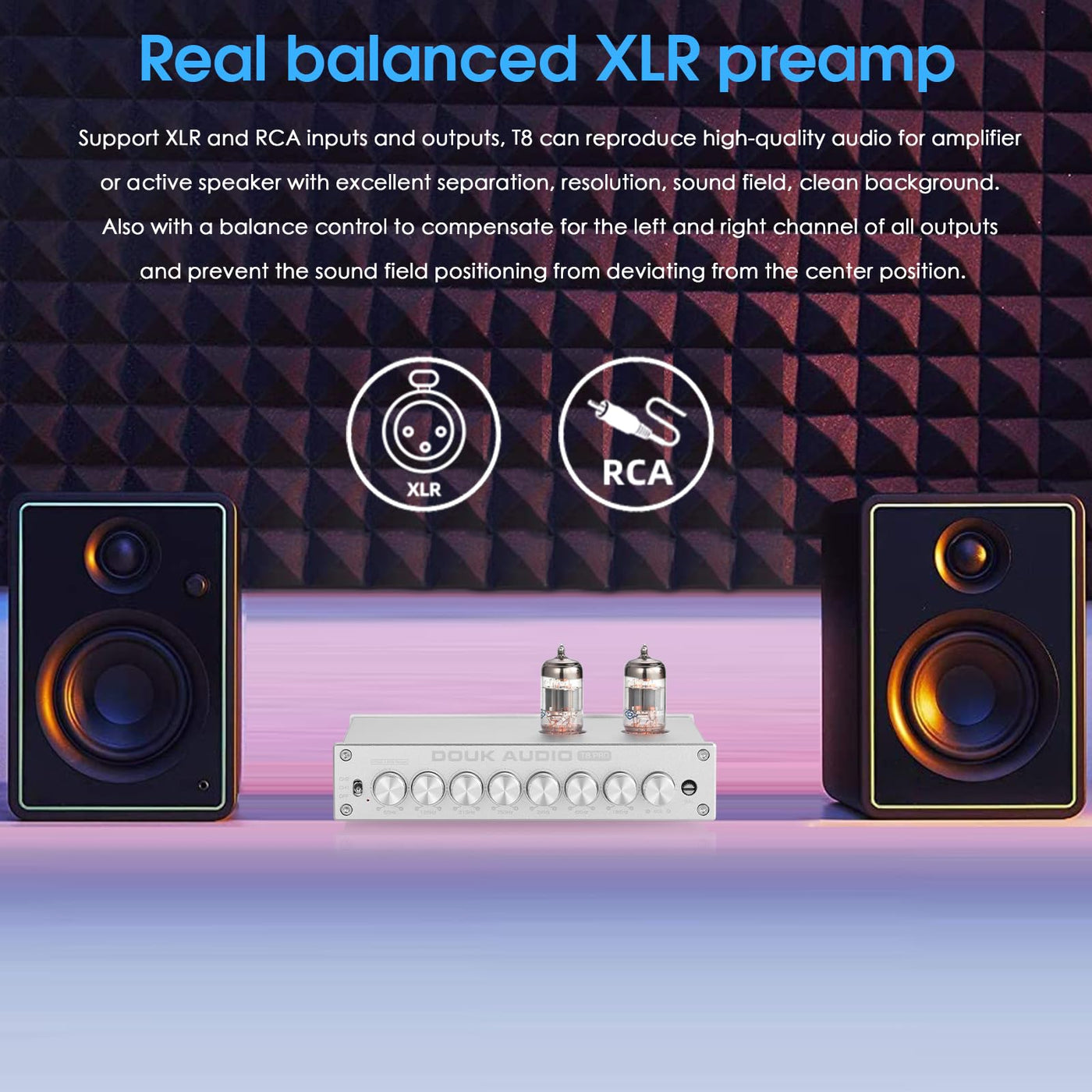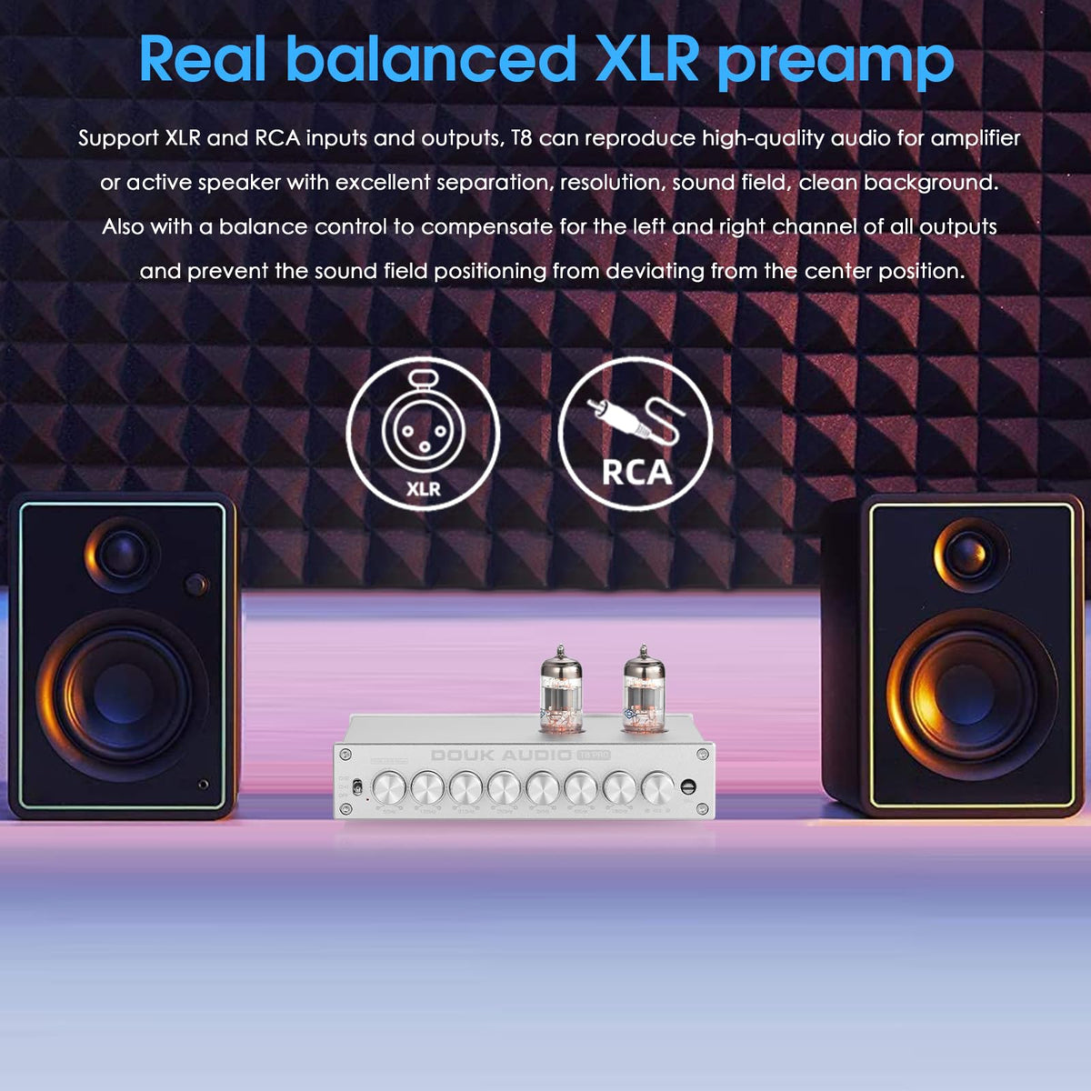 Douk Audio Hifi Vacuum Tube 7 Band Eq Preamp Equalizer Xlr Pre Amplifier Home (T8 Pro Silver)