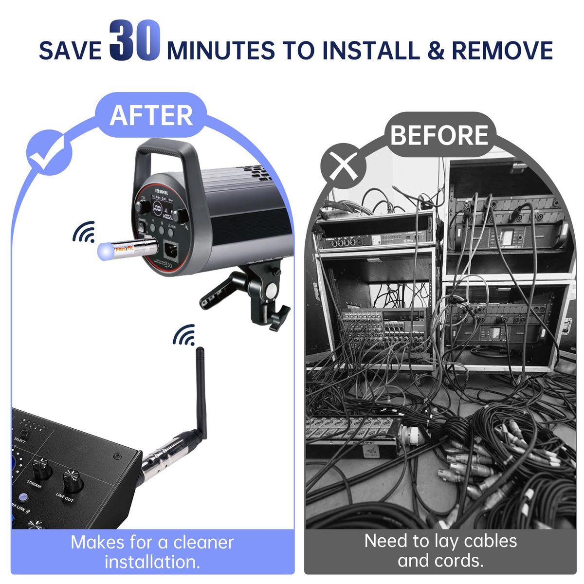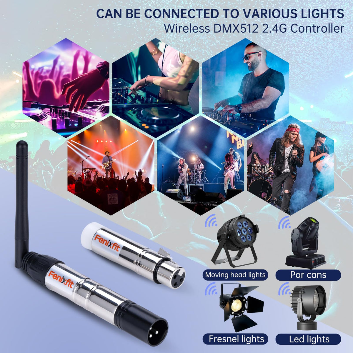 Fenixfit Wireless Dmx512 Transmitter Receiver No Latency Dj 2.4G Dmx Wireless 1 Transmitter & 3 Receivers Long Transmission Rang