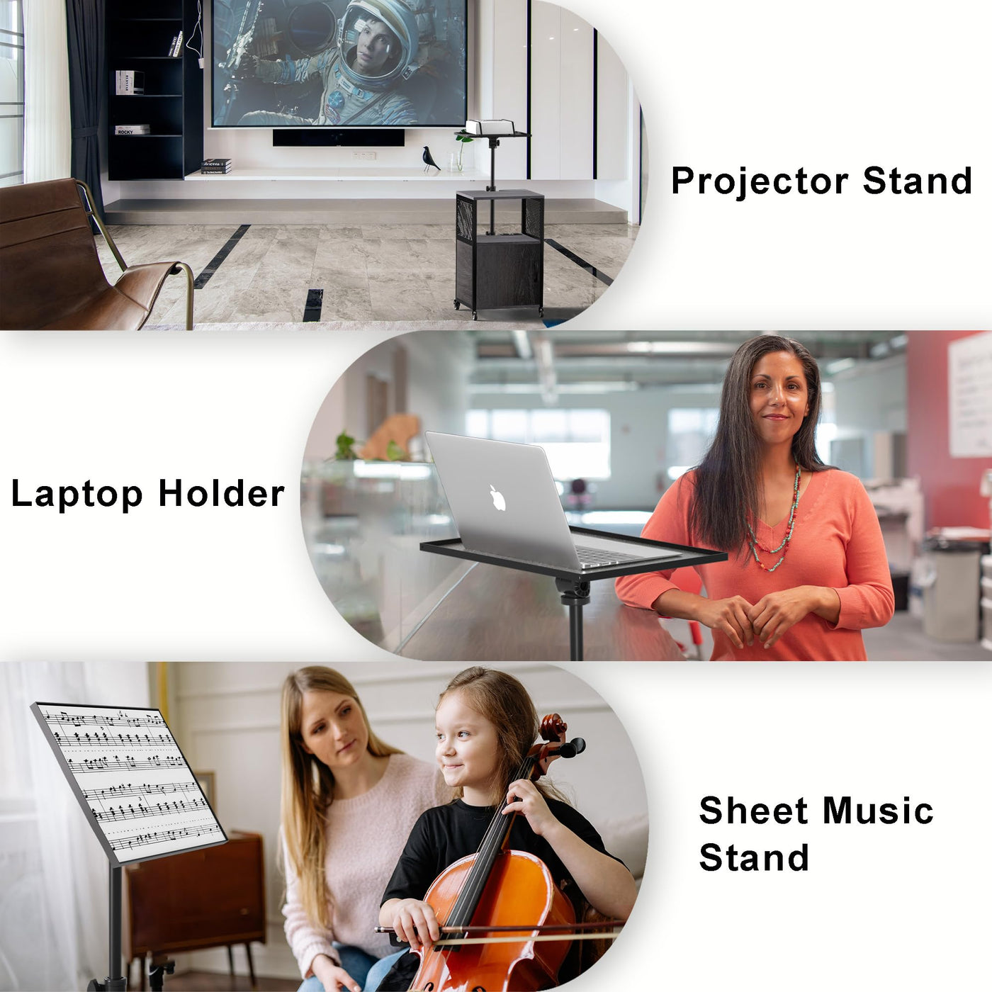 Gdlf Projector Stand With Storage Cabinet Heavy Duty Mobile Laptop Tripod Stand With Charging Station And Adjustable Height 28.4