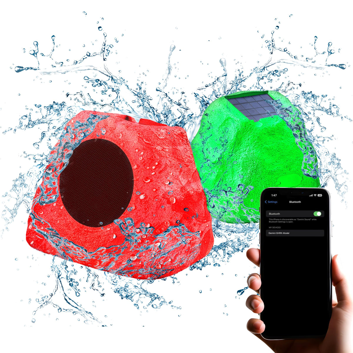 Gemini Sound Ghrk 500Ltms Pr: Portable Solar Powered Bluetooth Rock Speakers Pair With Multi Link, Weather Resistant Design For Outdoor Entertainment, Wireless Connectivity, And Ambient Led Lighting