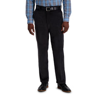 Haggar Mens Stretch Corduroy Expandable Waist Classic Fit Flat Front Casual Pants, Dark Grey, 38W X 29L Us