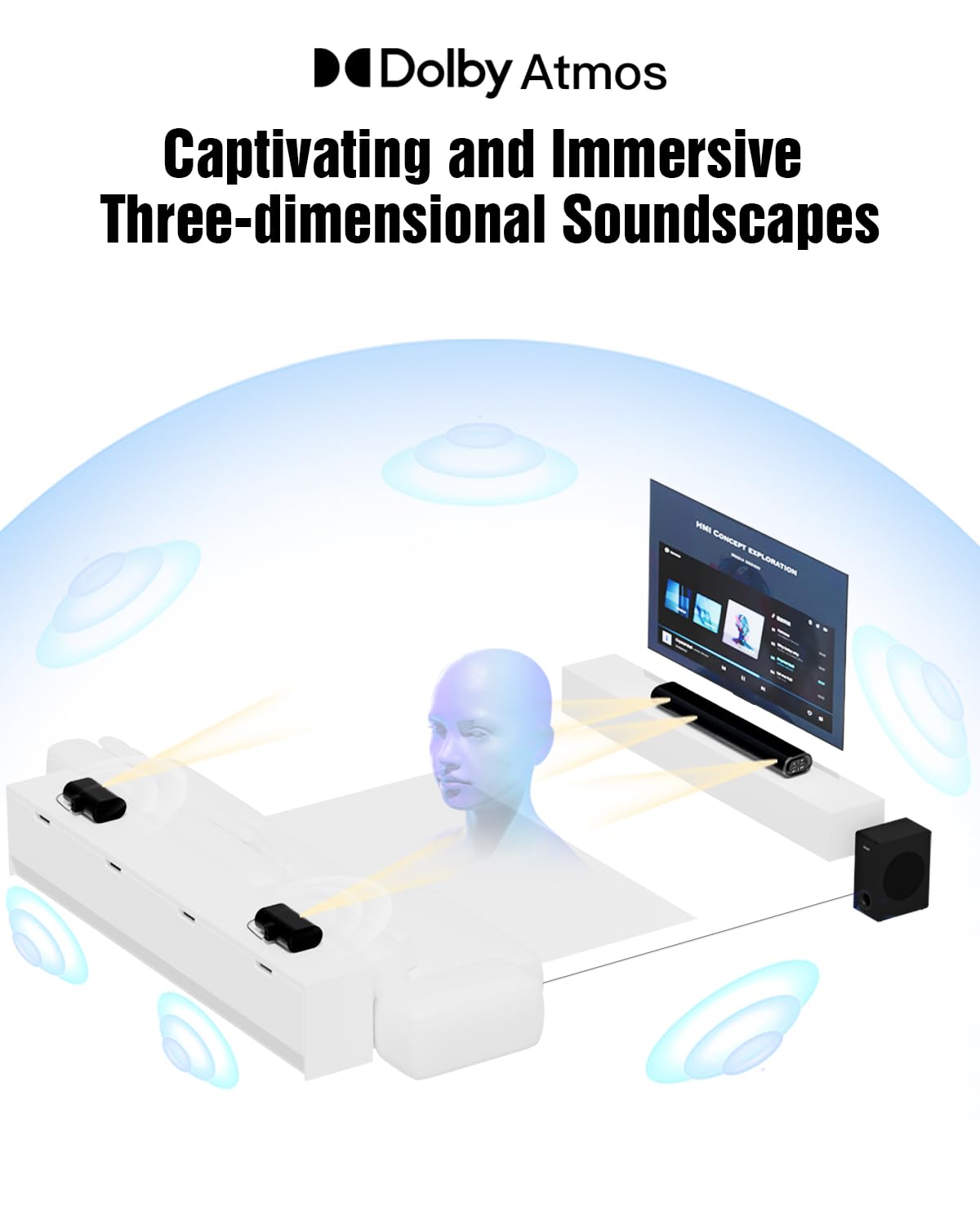 Hiwill 5.1Ch Soundbar, W/ 5.25'' Big Subwoofer Dolby Atmos Surround System, 2 Wired Rear Speakers Sound Bar For Small Rooms, Cle