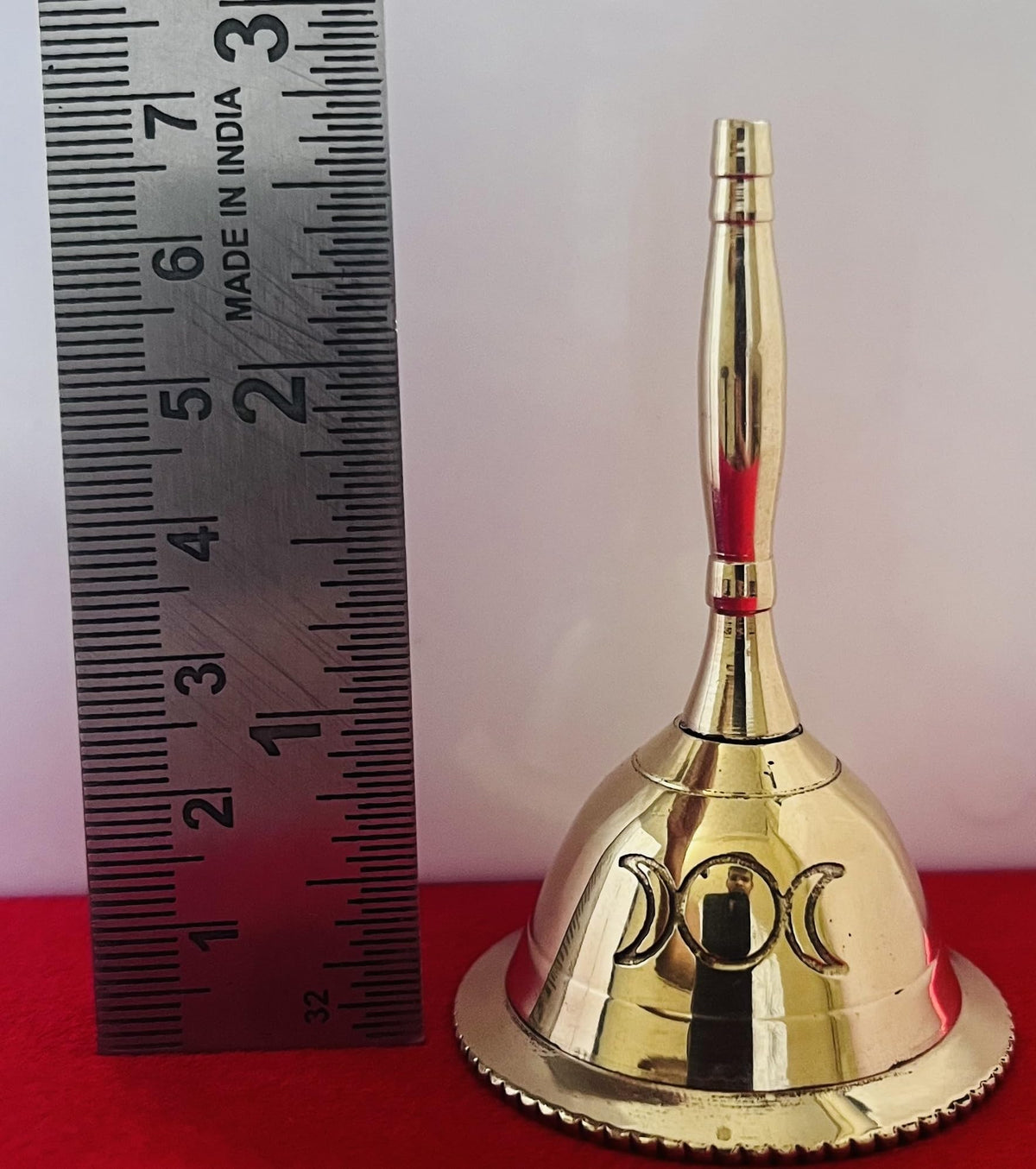 Indian Consigners Hand Bell Loud Brass Call Bells 3 Inches Altar Pendulam Use (Triple Moon Gold)