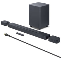 Jbl Bar-700 Soundbar And Subwoofer - Dolby Atmos - 3D Surround Sound - Detachable Battery-Powered Surround Speakers - Up To 10Hr Playtime - Purevoice Technology - Multiple Streaming Options - 620W Total Power - 240W Soundbar - 300W Subwoofer - 2X 40W Surround Speakers - 3X 46X90Mm Racetrack Drivers - 3X 0.75'' Tweeters - 1X 46X90Mm Racetrack Driver (Surround Speaker) - 10'' Subwoofer - 35Hz-20Khz Frequency Response - Optical - Bluetooth - Usb A - Wi-Fi - 1X Hdmi In - Earc - Hdr10 - Dolby Vision - 5.1 Channel - Works With Voice Assistant Enabled Speakers - 4K Pass Through - Easy Sound Calibration - Jbl One App - Box Includes Remote With Batteries, Power Cords, Hdmi Cable, Wall Mount Brackets And Templates, Quick Start Guide - Soundbar: (34.80''W X 4.70''W X 2.20''H) - Subwoofer: (12.00''W X 12.00''D X 17.30''H) - Surround Speaker: (5.70''W X 4.70''D X 2.20''H)- (Black)