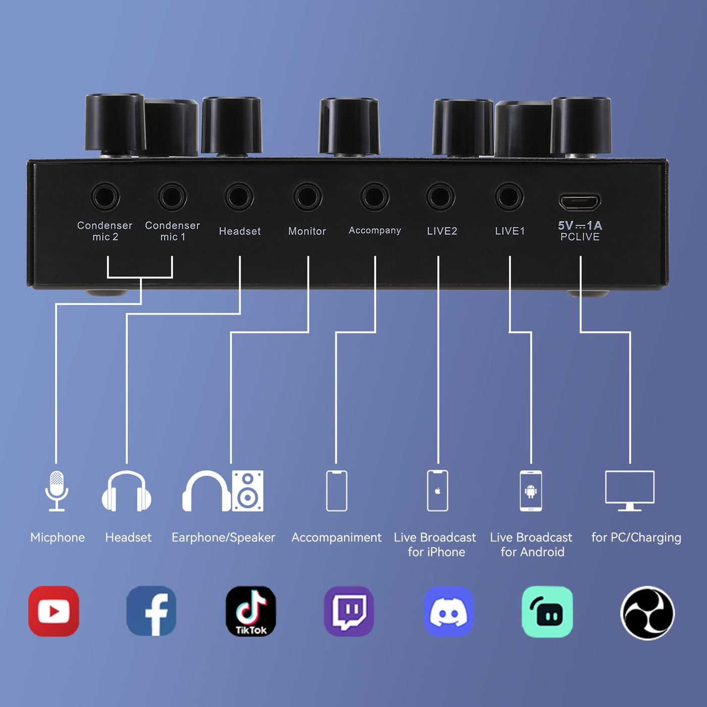 Koitmy Audio Mixer Small Potable Dj Live Sound Board Dual Channel Dsp Bluetooth Accompaniment For Pc Phone Gaming Karaoke Studio Streaming Recording Live Streaming Podcast