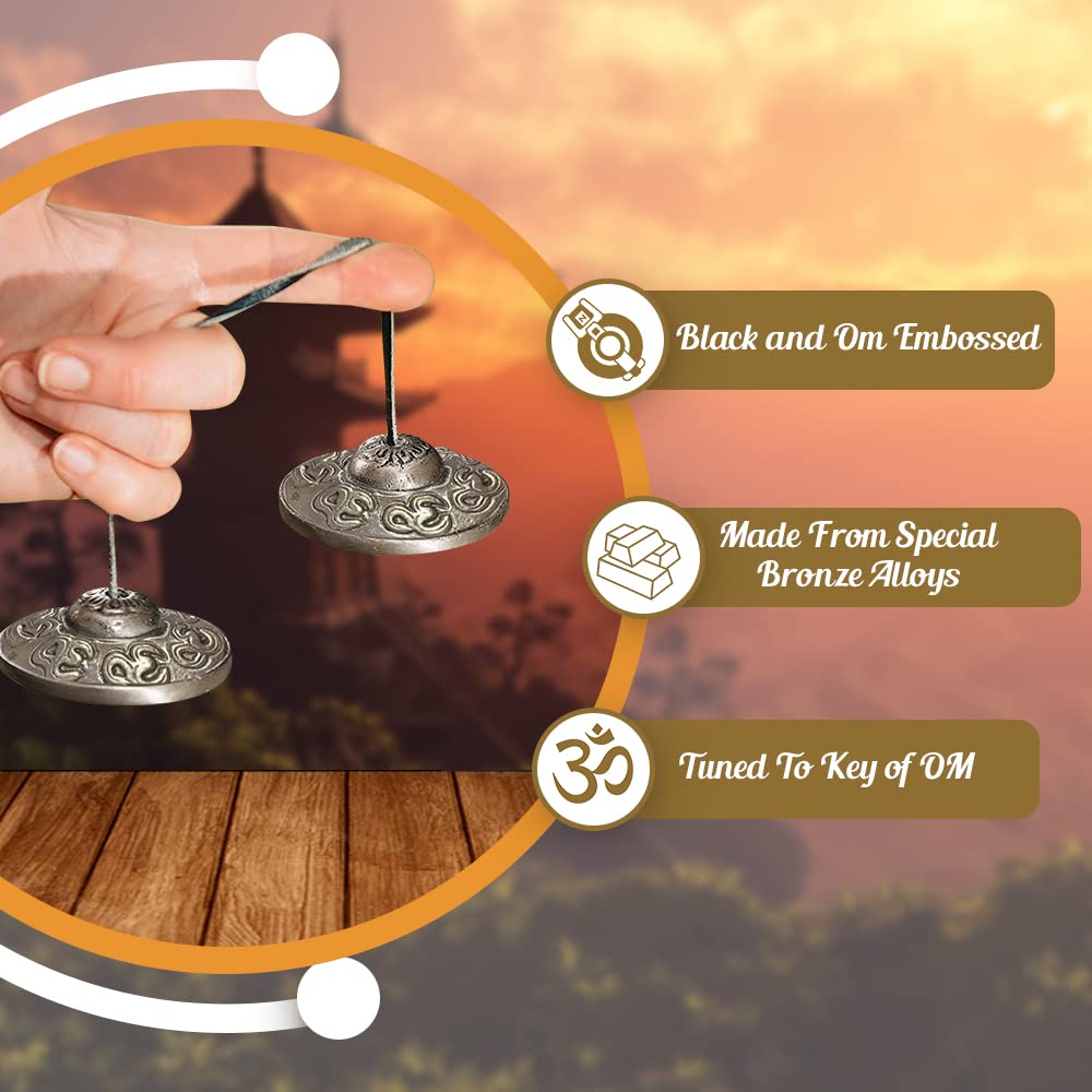 Tingsha Cymbals Tibetan Buddhist Lucky Symbol Embossed Meditation Yoga Bell Chimes Our Tingsha Bell Chimes Are Produced By Craftsmen In The Himalayan Region Of Nepal Our Collections Of Tingshas Are Engraved With The Om Mani Padme Hum Tibetan Mantra, Dragons, Buddhist Signs, Or Some Styles Are Plain Without Symbols (Each Has Its Own Meaning And Effects) Used By Ancient Tibetan Buddhist Practitioners During Their Prayers, Rituals, And Meditations Soothing Chimes Frees Your Mind And Induces Tranquil Silence Mostly Used Before Meditation Size: Mini-2 Inches, Variations: Plain, Black And Om Embossed Our Tingshas Are Produced By Local Craftsmen In The Himalayan Region Of Nepal Made Of: Tingsha Chimes Are Made From Special Bronze Alloys That Includes Blend Of 7 Metals That Produce Harmonic Overtones Engraved With Auspicious Symbols And Tuned To Key Of Om Usage Of Tibetan Tingsha Bell: Cymbals Are Used In Prayer And Rituals By Tibetan Buddhist Practitioners It Is Used During Yoga Practices, Meditation, Sound Healing, Mindfulness And Music Tingsha Along With The Other Instruments In Meditation Create A Sonic Tapestry Effect Practicing Tingsha Cymbals: Two Cymbals Are Joined Together By A Leather Strap Or Chain The Cymbals Are Struck Together To Produce A Clear And High-Pitched Tone Tingshas Are Very Thick And Produce A Unique Long Ringing Tone Which Last For 30 Sec-60 Sec The Tone Can Be Soft Or Loud Depending The Force You Use