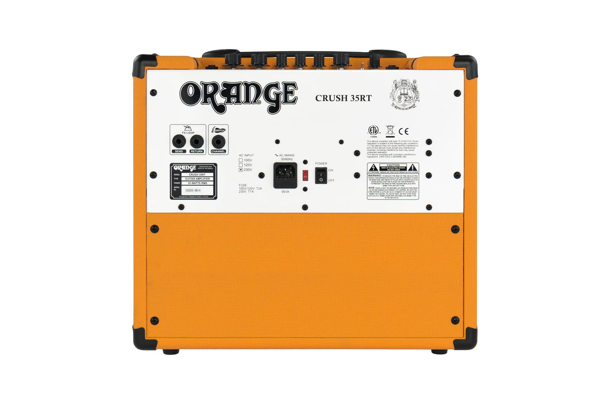 Forget Any Preconceived Notions Of Practice Amps. Made In Orange�S Brand New State Of The Art Factory The Crush Range Sets A New Benchmark For Quality, Introducing Players Of All Levels To The Essence Of Orange. For 2015 The Crush Series Has Been Completely Overhauled. Orange�S Mission Was To Not To Reinvent The Wheel, But To Buck The Trend - You Won�T Find Any Sterile Digital Amp Modelling Here. Building On The Huge Success Of Their Critically Acclaimed Crush Pro Models, They�Ve Introduced The Same High Gain, 4 Stage Preamp Design Into The Crush Range. This Means Responsive Overdrive And Detailed Levels Of Saturation Never Before Heard In A Practice Amplifier. Powerful Analogue Circuits Create Amps With �Gut Punch� Tones Which React Like Their Bigger Brothers In The Orange Family, Whilst Their New Cabsim Feature Faithfully Emulates The Muscle Of An Orange 4X12' Cabinet Through The Headphone Output. The Crush 35Rt Brings The Legendary Orange Sound To The Rehearsal Room. Sharing The Crush 20Rt�S Twin Channel Design, Digital Reverb, Chromatic Tuner And Cab Sim, The Crush 35�S Larger Size And Bigger Output Section Delivers Even Greater Punch And Volume. Complete With A Transparent, Fully Buffered Effects Loop This Amp Goes Way Beyond The Call Of The Traditional �Practice� Amplifier.