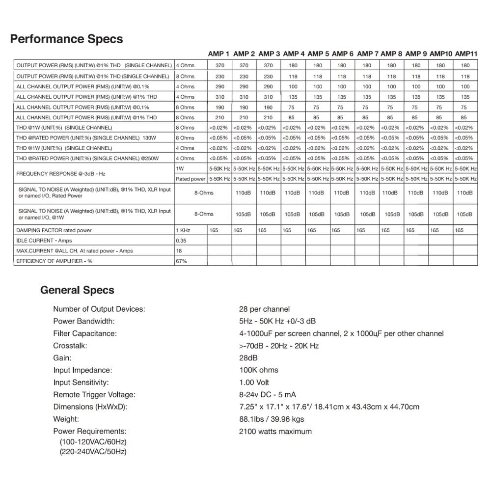 The Only Purpose Of A Home Theater Amplifier Is To Provide Sufficient Gain To Achieve The Desired Sound Levels Without Adding Anything Else, Such As Distortion Or Coloration. For Reference-Level Home Theaters, The Level Is Based On What Is Achieved In Commercial Theaters. Commercial Theaters Have Standards That Are Agreed By The Industry And The Movie Producers, Directors, The Sound Guys And The Special Effects Teams. They All Know What These Levels Are And ?Esignthe Sound Of The Movie With These Levels In Mind. To Replicate The Soundtrack Of A Movie, As The Creators Intended, Requires That Reference Home Theaters Can Achieve The Same Levels Of Power With Very Low Distortion And Matching Timbre Across All Channels. The Xmax11 Can Do This Power Is The Most Critical Part Of The Design. The Amp Must Be Able To Power The Speakers To The Reference Levels The Creators Expect - In The Home Theater World This Is 108Db For The Screen Speakers And 105Db For The Other Speakers. With 310 Watts For The Screen Speakers And 135 For The Others, These Spl Levels Are Easily Achievable Without Distortion. Identical Timbre And Minimum Coloration Is Achieved Because Each Channel Of The 11-Channel Xmax11 Has Identical Components, Capacitors, Power Supplies, Transistors, Etc. This Ensures That Each Speaker Gets Exactly The Same Sonic Signature. This Is Necessary For A Cohesive And Immersive Experience.