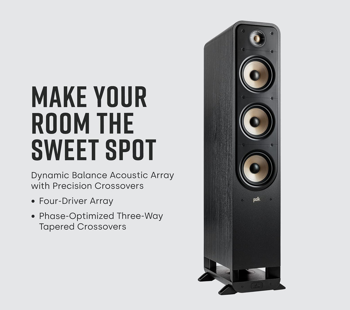 Polk Audio Signature Elite Es60 Tower Speaker Hi Res Audio Certified And Dolby Atmos & Dts:X Compatible, 1'' Tweeter & Three 6