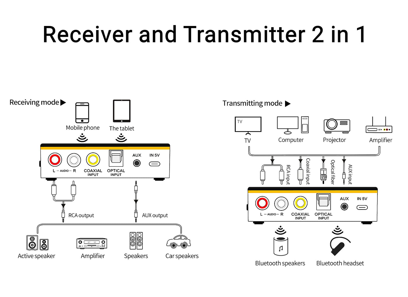 Ponybro Bluetooth 5.0 Audio Receiver Transmitter 2 In 1 With Remote, Bluetooth Hi Fi Audio Adapter With 3.5Mm&Rca,Coaxial,Optica