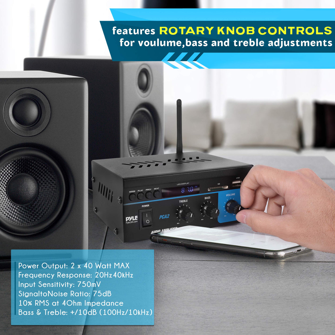 Pyle Home Home Audio Power Amplifier System 2X40W Mini Dual Channel Sound Stereo Receiver Box W/ Led For Amplified Speakers, Cd