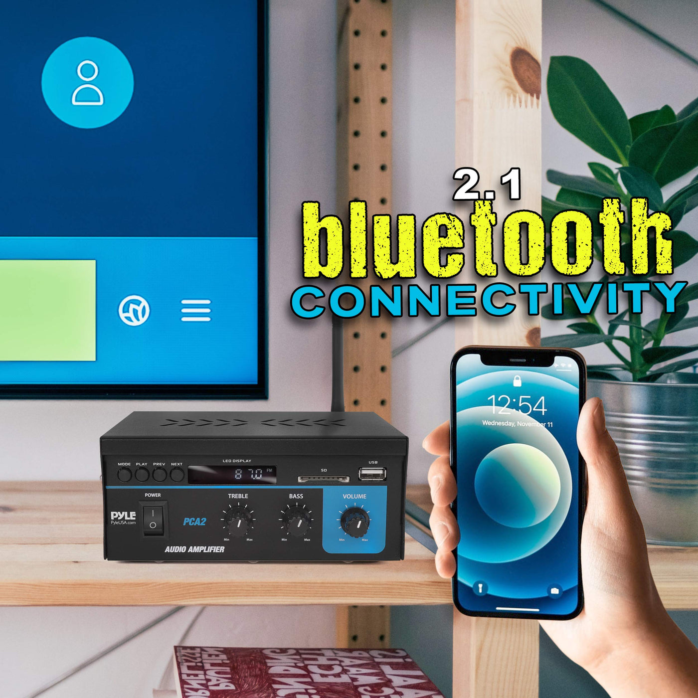 Descriptionfrom The Manufacturerfront Viewclick Here For A Larger Image Connection Diagramclick Here For A Larger Image Stereo Power Amplifierclick Here For A Larger Image Back Viewclick Here For A Larger Image The Ultimate Stereo Power Amplifierthis Amplifier Gives You The Power And Versatility You Need To Create A Professional Sound System. Its Wide Frequency Response Makes It Suitable For Amplifying Any Type Of Audio, Including Music Or Vocals. It Can Be Used In Meeting Halls, Restaurants, Schools, Stores, And At Home --The Perfect Solution For Paging Systems Anywhere. Get The Power You Need With 2 X 40 Watt To Handle All Your Audio Needs. 110/220 Voltage Selectorthis Amplifier Has Selectable Input Voltage From 110V/60 Hz (The Standard In Usa And Canada) To 220V/50 Hz (For European Operation). Please Make Sure The Switch Is In The Proper Position Before Operating. Compatibilitycompatible With Cd Players, Walkmans, And Computerized Devices, Including Mp3S, Via .14 Inch Rca Converter. Rca L/R Line Inputlets You Connect The Desired Line Input Source. Take Controluse The Control Center Panel Located On The Face Of The Unit To Make Adjustments To Microphone Volume, Master Volume, Balance, Bass, And Treble. Push Type Speaker Terminalslets You Easily Connect Speaker Wires Directly To The Amplifier. Replaceable Power Fusethe Amplifier Uses A Fuse For Protection Against Surges And Short Circuit. If The Amplifier Suddenly Turns Off And Will Not Turn On, Check The Fuse And Replace It If Necessary. (Replacement Fuse To Use: 1.5-Amp, 250-Volt, Fast-Acting .16 X .8 Inch Fuse --Not Included) Additional Features Harmonic Distortion: 0.3% 2 X 40 Watt Rms At Four Ohm Blue Led Output Level Display Frequency Response: 20 Hz-40 Khz Power Fuse: 1.5 A, 250 V Fast-Acting (5 X 20 Millimeter) Power Requirement: 120V Ac 50 Hz/230 V Ac 50 Hz Tone Controls: Bass And Treble: +/-10Db (100 Hz/10 Khz) Dimensions: 8.27 X 2.72 X 5.39 Inch (190 X 70 X 137 Millimeter)Product Descriptionpylehome Model : Pca2Stereo Power Amplifier, 2 X 40 Wattstereo Power Amplifier, Compact Audio Amp With Rca & Speaker Terminals (2 X 40 Watt)Features: Compact And Powerful Mini Amp System Rca (L/R) Audio Input Connect To External Audio Devices Pushtype Speaker Terminals Front Panel Rotary Controls Led Indicator Light Power On / Off Switch Configurable Treble, Bass & Volume Adjustmenttechnical Specs: Power Output: 2 X 40 Watt Max Frequency Response: 20Hz40Khz T.H.D.: 0.3% Input Sensitivity: 750Mv Signaltonoise Ratio: 75Db 10% Rms At 4Ohm Impedance Tone Controls: Bass & Treble: +/10Db (100Hz/10Khz) Power Fuse: 1.5 A, 250V Fastacting (5 X 20Mm) Power: 110/220V Voltage Selector, 50/60Hz Dimensions (W X H X D): 5.9'' X 2.9'' X 6.4'' Inchesthis Mini Stereo Power Amplifier Provides Up To 40 W Of Power On Each Channel At 4 Ohms. Connect Your Inputs Using The Rca Jacks. Outputs Over Standard Speaker Push Jacks. It'S Compatible With Any Audio Or Computer Device You Can Even Hook Up An Ipod Using A 3.5Mm To Rca Jack Converter. Treble, Bass, And Volume Controls On The Front Let You Tweak Your Sound To Exactly How You Want It. Runs On 110 Or 220 V.