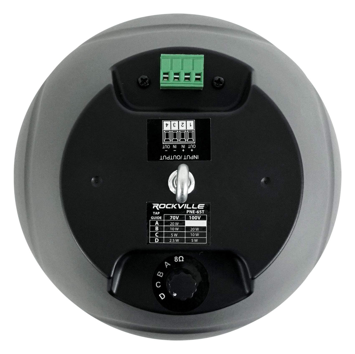 Whats In The Box: Speaker, Eyelet Hanging Bracket | Features: Rockville Pen-65T Black 6.5 70V Hanging Pendant Speaker For Commercial/Restaurant, 70 Volt Or 8 Ohm Operation, 6.5