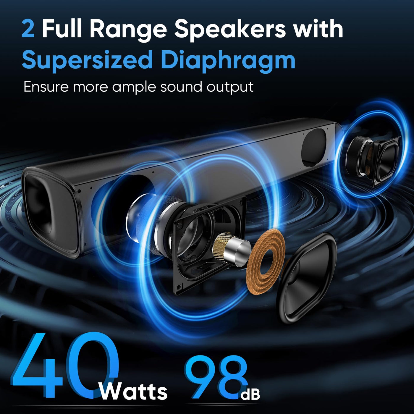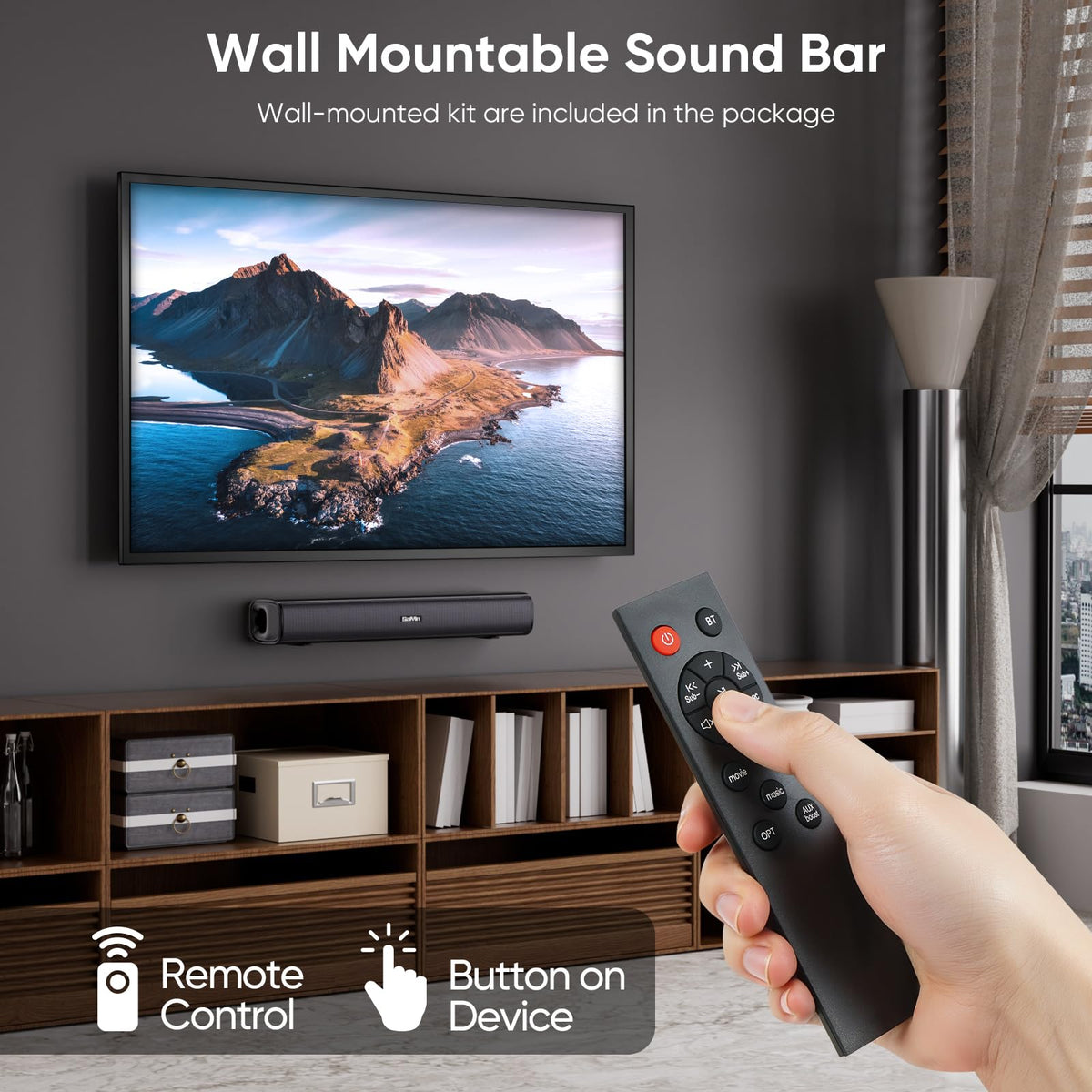 Saiyin 17 Inch Sound Bar For Smart Tv With Bluetooth 5.3/Optical/Auxiliary, Wall Mountable Soundbar For Tv With Sub Out Port, Dual Full-Range Speakers, 40W Tv Sound Bar For Pc/Gaming/Projectors