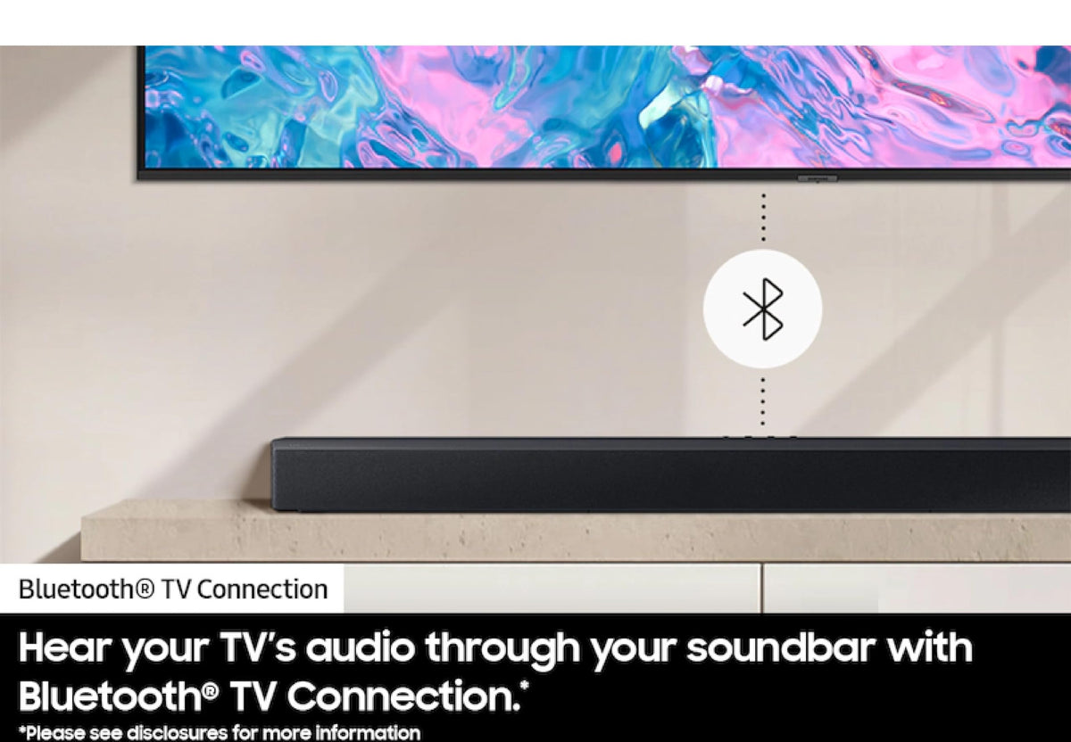 Enjoy Wireless Audio Streaming And Enhanced Tv Audio With The Samsung Hw-C400 40W Stereo Soundbar. This Sound Bar Features An Optical Input For Digital Audio Connectivity To Your Tv As Well As A 3.5Mm Input For Analog Wired Devices. Bluetooth Connectivity Is Built Into The Sound Bar For Wireless Audio Streaming From Compatible Devices Like Smartphones And Tablets And Wireless Connection To Compatible Samsung Tvs. A Remote Control Is Included As An Added Convenience.