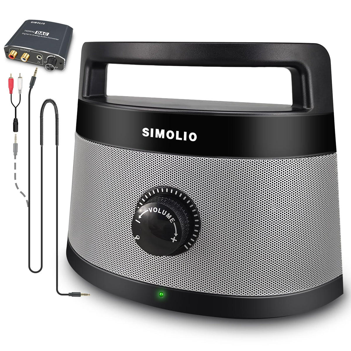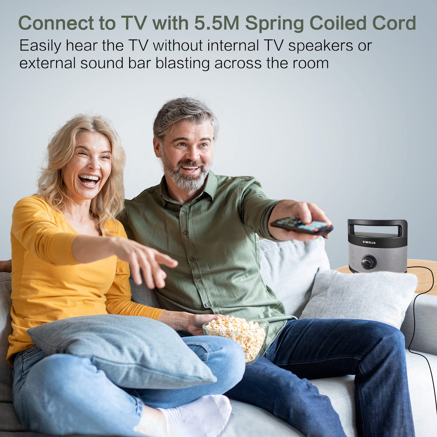 1. Simolio Wired Tv Speakers Come With A 5.5M (18Ft) Long Spring Coiled Audio Cable, Enough To Cover The Distance Between You And Your Regular Wired Soundbar, So Your Ears Can Hear Tv Better With This Tv Voice Amplifier Sitting Right Next To You Without Tv Sound Blasting Across The Distance Before It Reaches Your Ears. 2. This Tv Speaker Designed For Seniors And The Elderly Has Three Levels Of Tone Control (Treble2 / Treble1 / Normal), Can Be Adjusted To Find The Sound Frequency That Fits You Best, So That You Can Hear Audio Clearly. Television Wired Speaker Very Practical For Seniors And The Elderly Who Has Hearing Issues In Mids And Highs. 3. Wired Tv Audio Assitive Listening Device Compatible With Any Device With Digital Optical, Coaxial, 3.5Mm Audio Output Port Or Rca Audio Output Jack, Including Smart And Older Tvs, Av Receivers, Pcs, Tablets, Smart Phones, Etc... 4. External Speakers For Smart Tv Can Either Be Plugged In, Or Powered By The Built-In Rechargeable And Replaceable Li-Battery, Making It A Perfect Small Tv Speaker For Seniors To Achive Extended Tv Programs Viewing. 5. With Dual High-Presicion Driver Built-In, This Tv Audio Amplifier Giving Powerfully Amplified, Clear Crisp Sound Right Next To You.