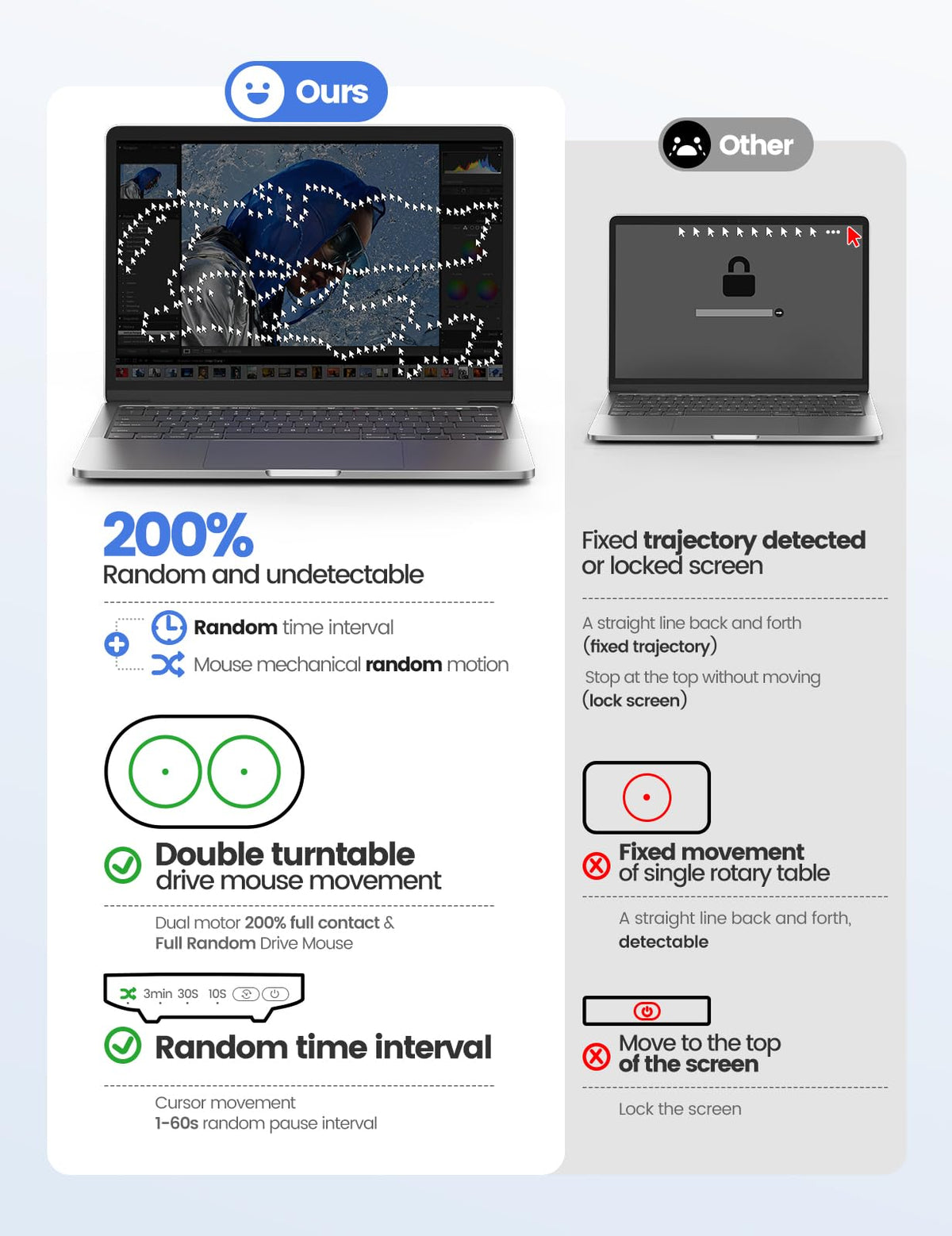 Starviky Dual Turntable Mouse Jiggler Silent Mechanical Movement With Random Function, Undetectable Mouse Mover, Timer, Keep Com