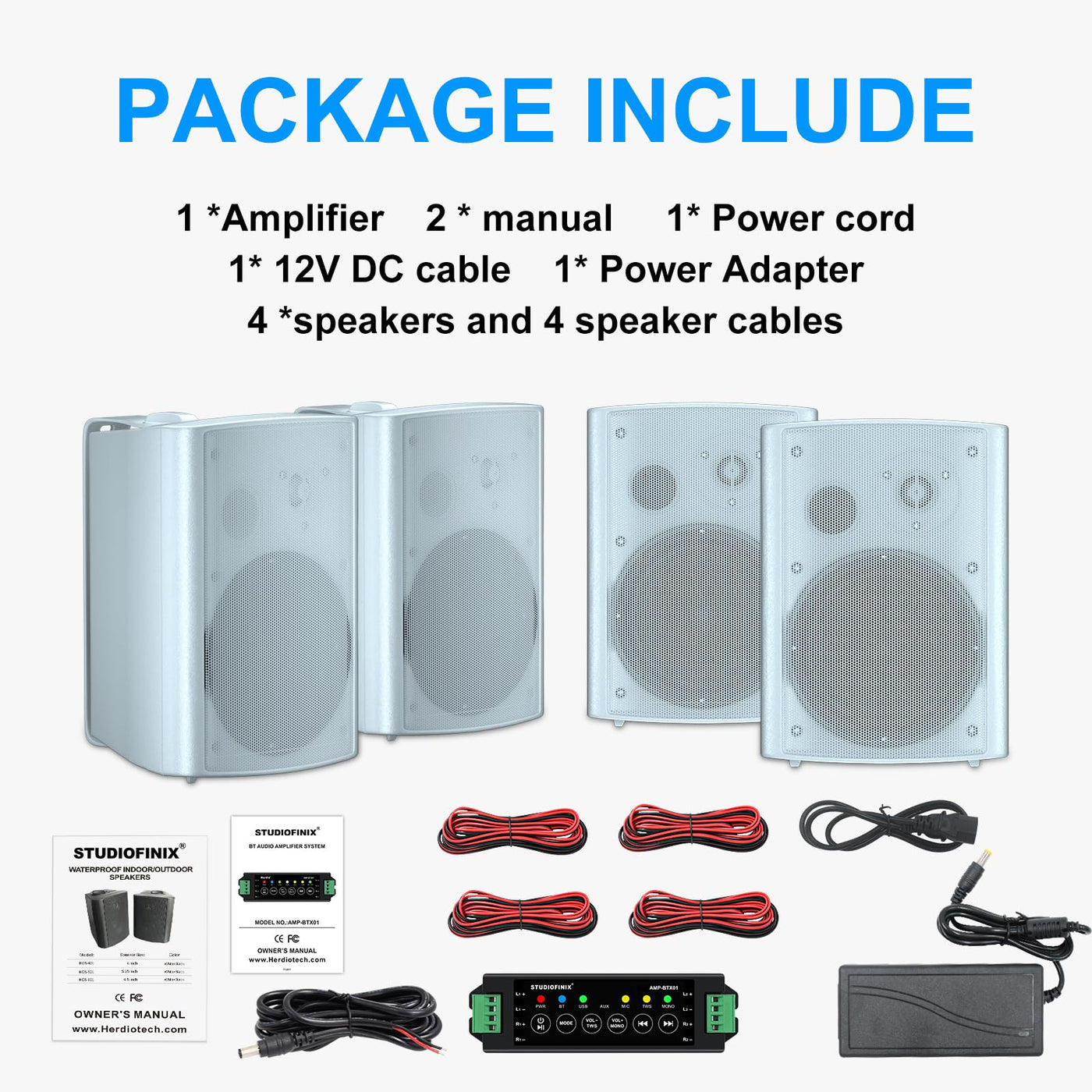 Max Power: 200 Watts Per Speaker (400 Watts Per Pair, 800 Watts Per 2 Pair) 6.5'' Woofer With Polypropylene Cone, 1'' Pet Dome Tweeter Is Very Efficient And Has Great Sound. The St-4-601Bt Is Now A Full-Range, High-Efficiency Speaker System Truly Suitable For Indoor And Outdoor Use. | Extensive Usefulness: 2-Way Bluetooth Speakers Sound Is Now Made To Rock From A Backyard/Patio, Under The Eaves, Or Near The Pool, And It Still Provides Great Sound On A Rv. | Outstanding Features: Studiofinix Wall Mount Speaker, Ip66 Rating Makes This Suitable For Outdoor Use Or Indoor Use, This Can Withstand Dust Intrusion Or Water Spraying From Any Angle. Rugged Abs Cabinet And Aluminum Grill Make The Speakers Durable And Lastlong. | Multifunction Amp68: Allow 4 Speakers To Work Together. The Amplifier Support Blutooth 5.0, Aux, Usb,Mic,Tws Etc. Package Includes Amp Manual, Easy To Use. Features High Fidelity And Sound Clarity And Creates An Immersive Environment. | Passive Speaker Pairs: Includes 4 Passive Speakers, Connect With Included Speaker Wire. Customer Service: We Pride Ourselves In Ensuring Customer Satisfaction. If There'S A Technical Question We