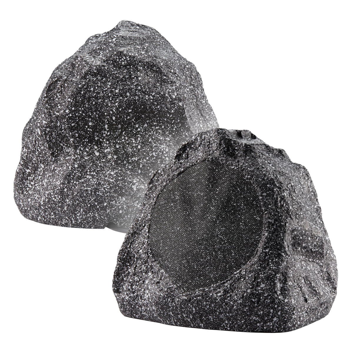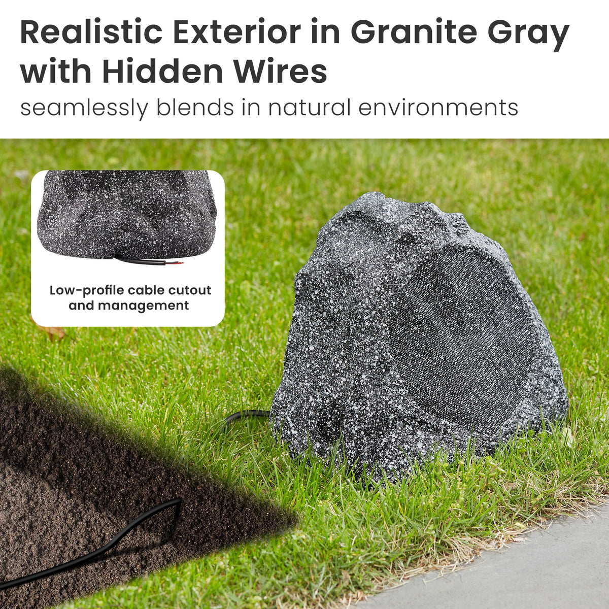 Theater Solutions 2R6G Outdoor Granite 6.5 Rock 2 Speaker Set For Deck Pool Spa Yard Garden, Granite Grey