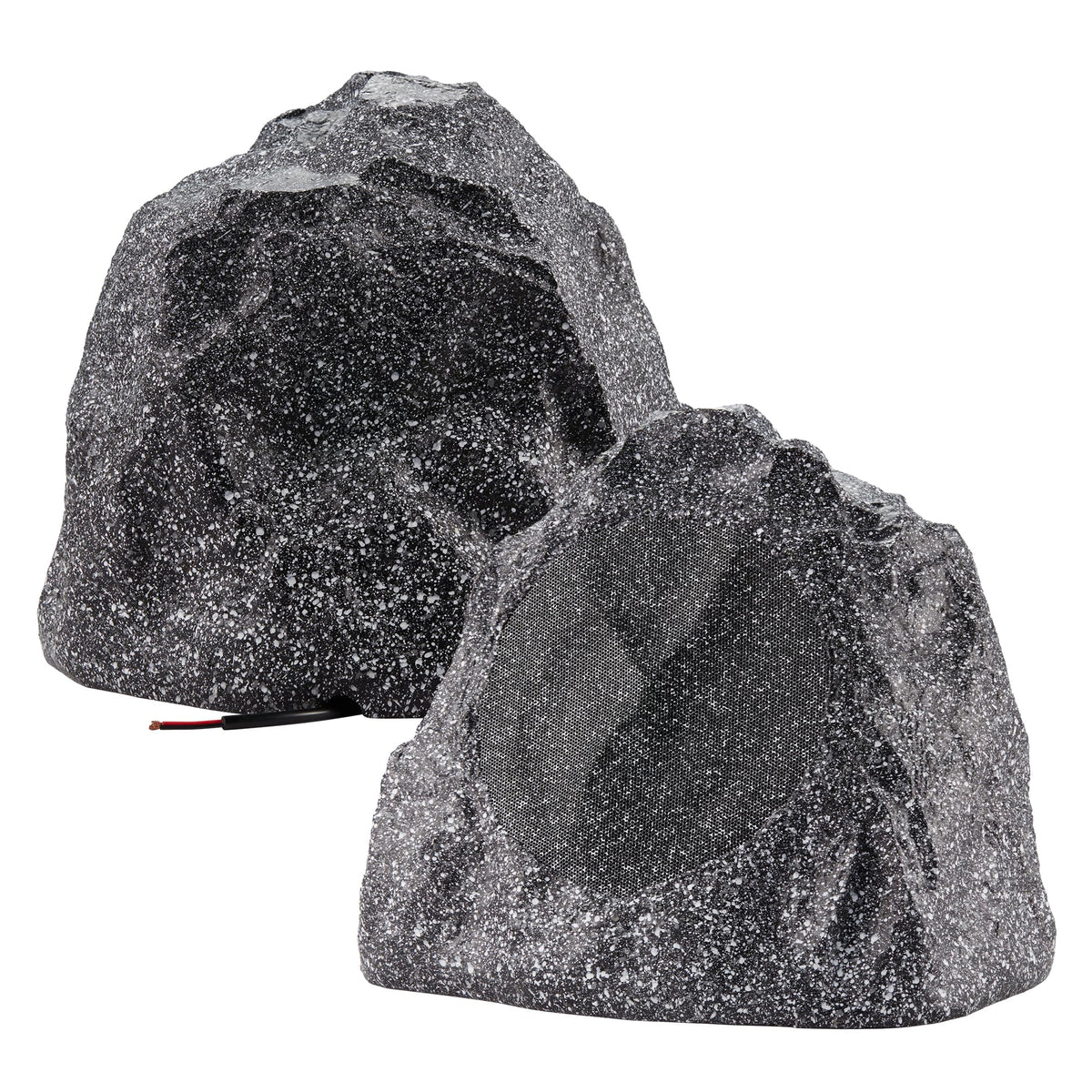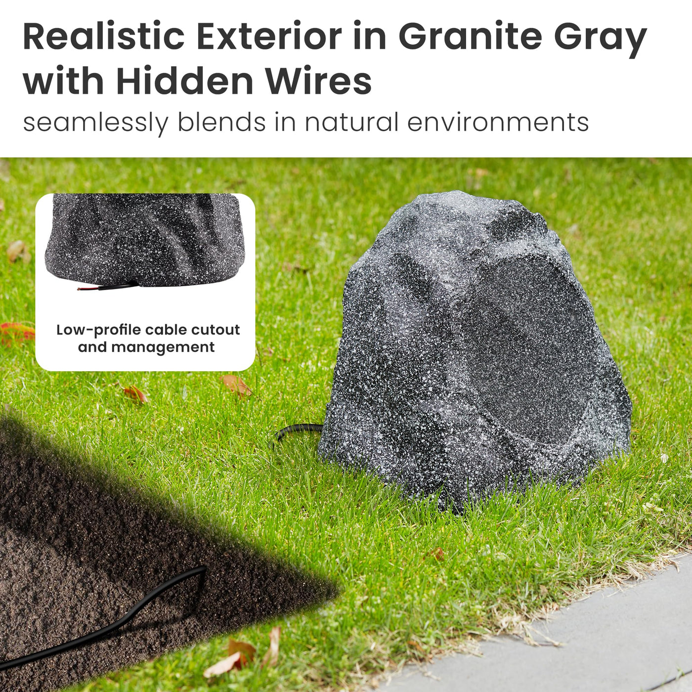 Theater Solutions 2R8G Outdoor Granite 8 Rock 2 Speaker Set For Deck Pool Spa Yard Garden, Granite Grey