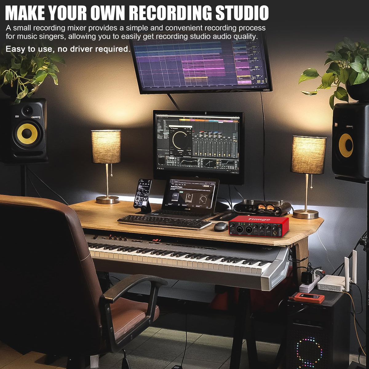 The Tiimge 2X2 Audio Interface Is The Solution For 24Bit/192Khz High-Fidelity Recording, Whether You Are A Musician, Announcer Or Streamer. Fidelity Recording, The Interface Captures Every Detail Of Your Music, Ensuring That Your Recordings Sound Crystal Clear. With 48V Phantom Power, The Tiimge Audio Interface Provides Ample Power To Your Condenser Microphone, Ensuring Your Vocals And Instruments Sound Their With Plug-And-Play Functionality, This Interface Is Easy To Use - Just Plug It Into Your Computer'S Usb Port And Start Recording. Whether You'Re Recording Vocals, Guitars, Or Other Instruments, The Tiimge Audio Interface Is The Best Choice. It'S Compatible With Popular Software, Allowing You To Easily Integrate It Into Your Workflow. Designed For Professional Use, The Tiimge Audio Interface Features Xlr/Tsr/Ts Inputs For High-Quality Sound. The Interface Is Perfect For Use In Home Studios, Podcast Setups, And More.