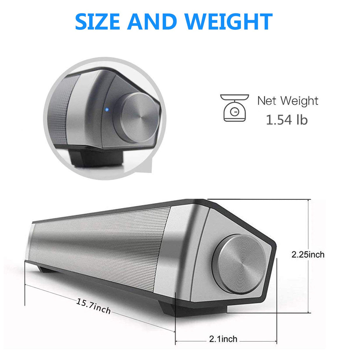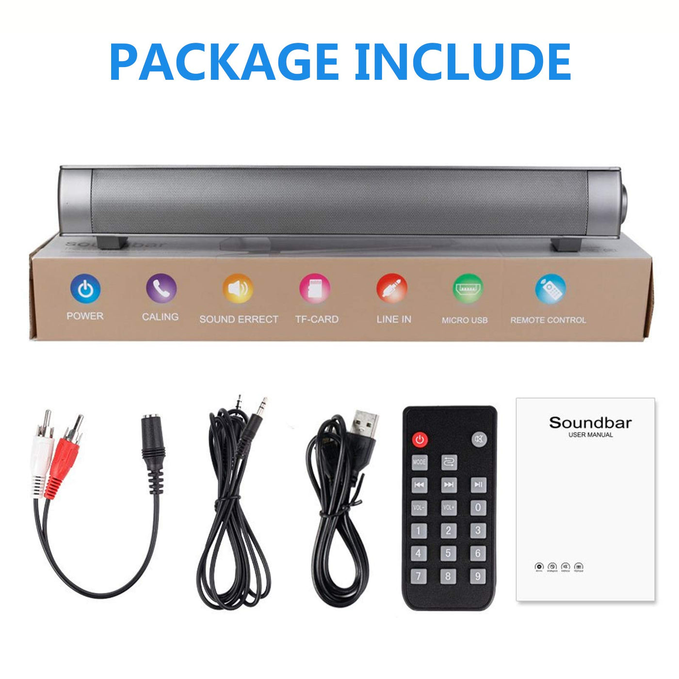 Toproad Sound Bar | Soundbar Wired And Wireless Bluetooth 5.0 Speaker | Built In Mic | For Cell Phone/Tablet/Projector And Suppo