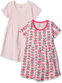 Touched By Nature Girls, Toddler, Baby And Womens Organic Cotton Short Sleeve And Long Sleeve Dresses, Flower Short Sleeve, 12 1