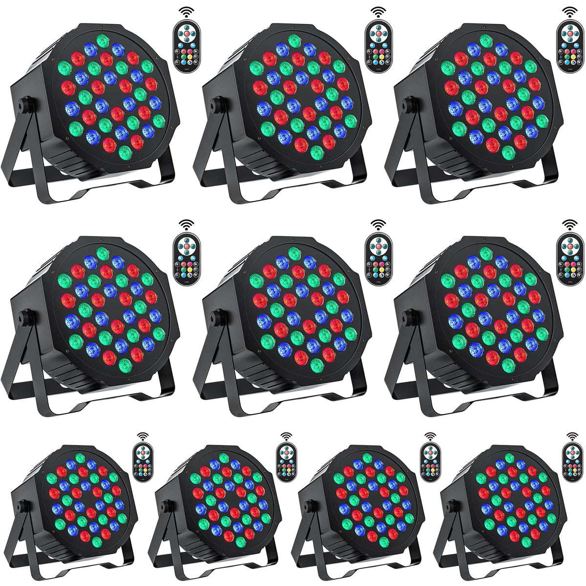 Uking Stage Lights 10 Packs 36Led Rgb Led Par Lights, 7 Channel Dj Party Lights With Remote Control & Dmx Controller Sound Acti