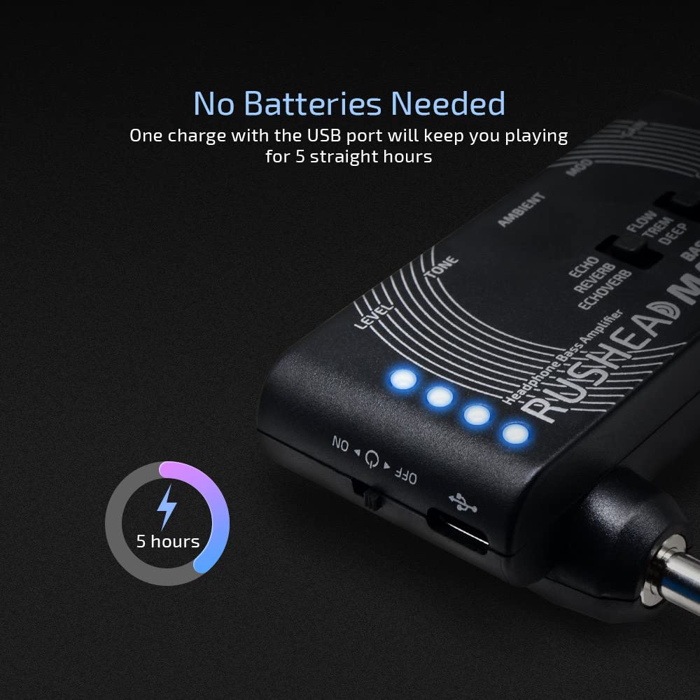 Amp Module With Clean, Overdrive And Distortion Amp Models Based On World-Class Bass Amplifiers With Cab Sim For Headphones Or Line-Out Into Full Range Freq Response System | Switchable Mod Module With Chorus (Flow), Tremolo (Trem) And Flanger (Deep) Effects For Different Tone Demands | Switchable Ambient Module With Reverb And Echo Effects For Adding Ambience To The Tone | Aux Input For Jamming Along With Any Audio Player | Onboard Usb Charger Let You Play Anytime, Anywhere For Up To 5 Hours