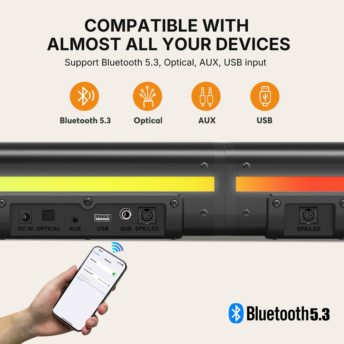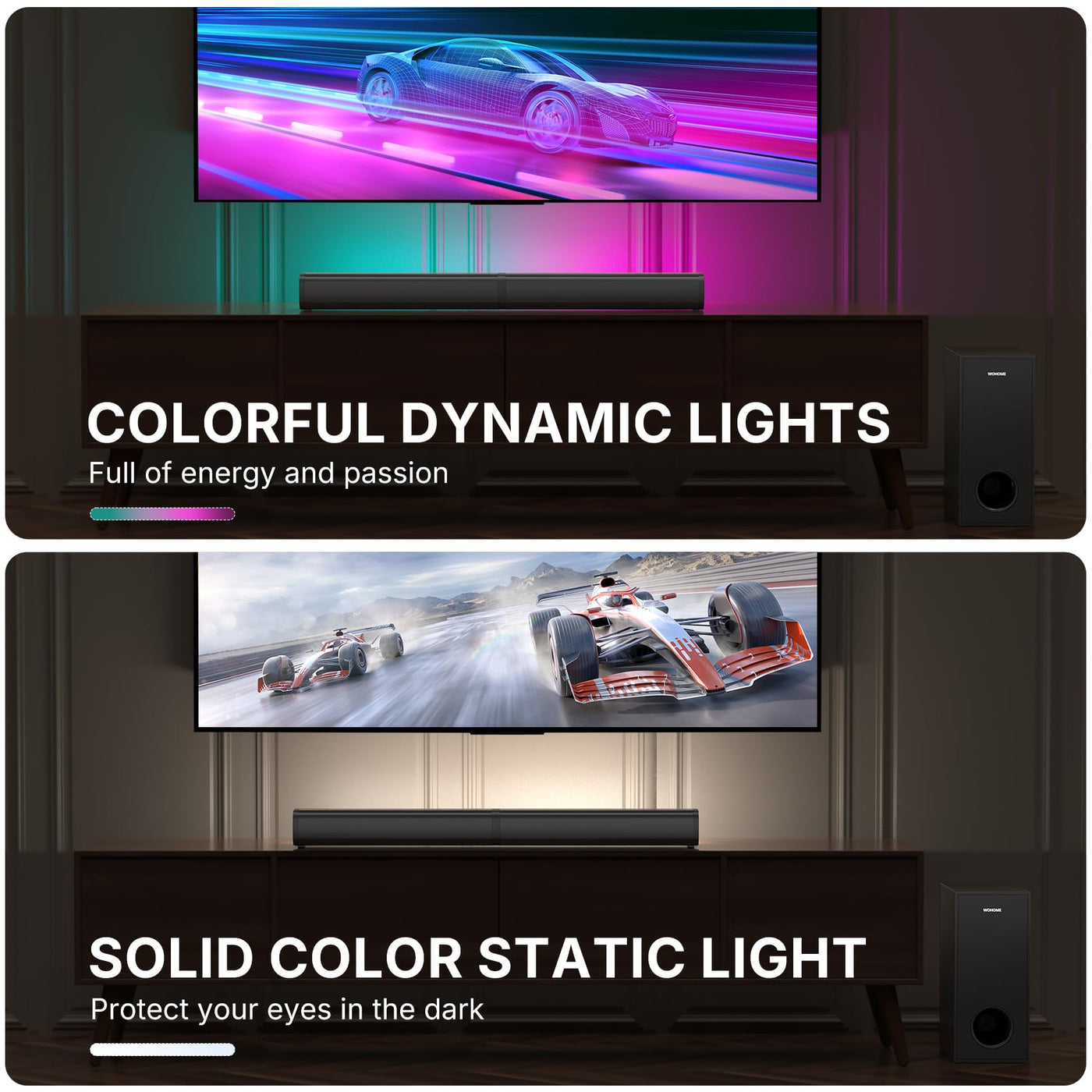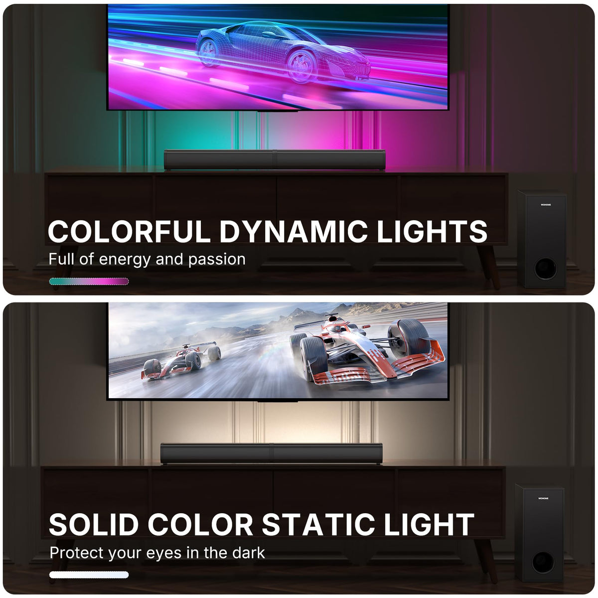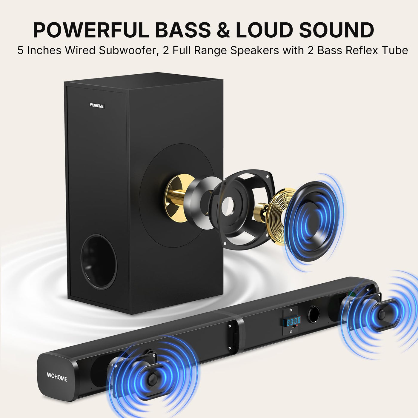 Wohome 2.1 Sound Bar For Smart Tv With 5 Inches Wired Subwoofer, 140W, 2 In 1 Detachable Soundbar With Rgb-Ic Backlight, Bluetooth 5.3, Optical, Aux, Usb Input, Bass Adjustable, Remote/Button Control