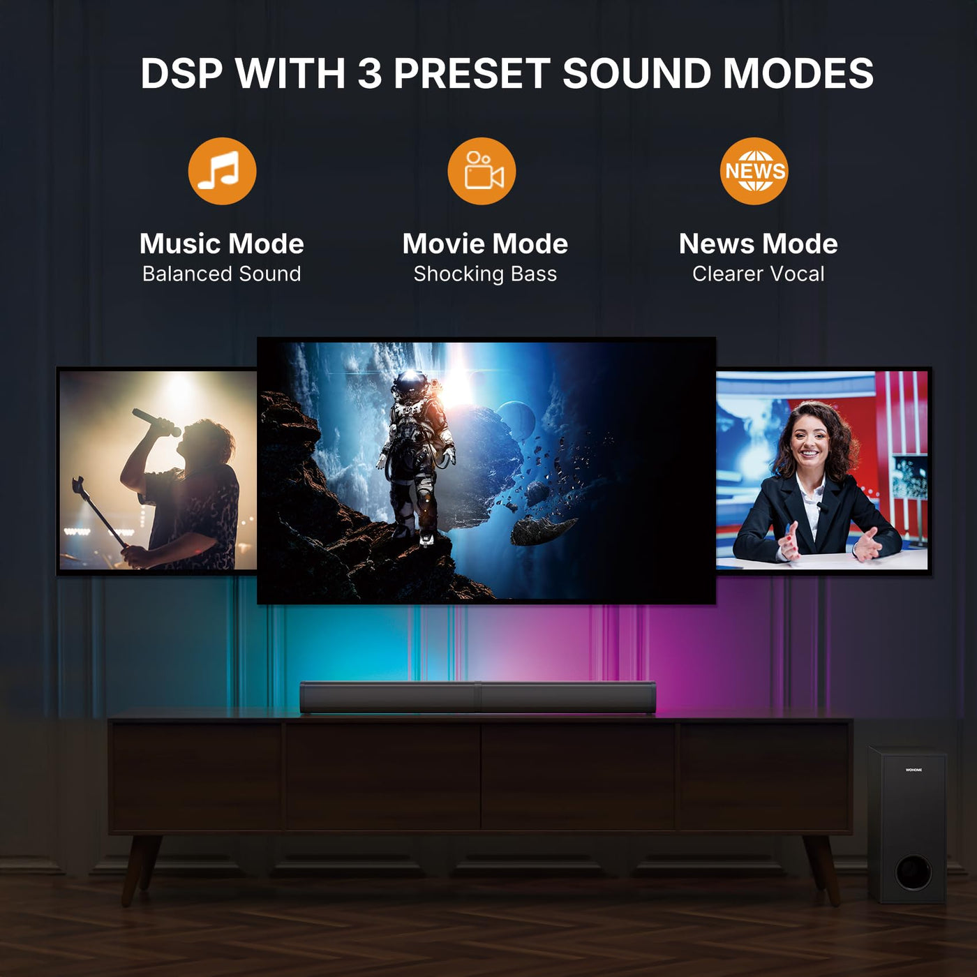 Wohome 2.1 Sound Bar For Smart Tv With 5 Inches Wired Subwoofer, 140W, 2 In 1 Detachable Soundbar With Rgb-Ic Backlight, Bluetoo