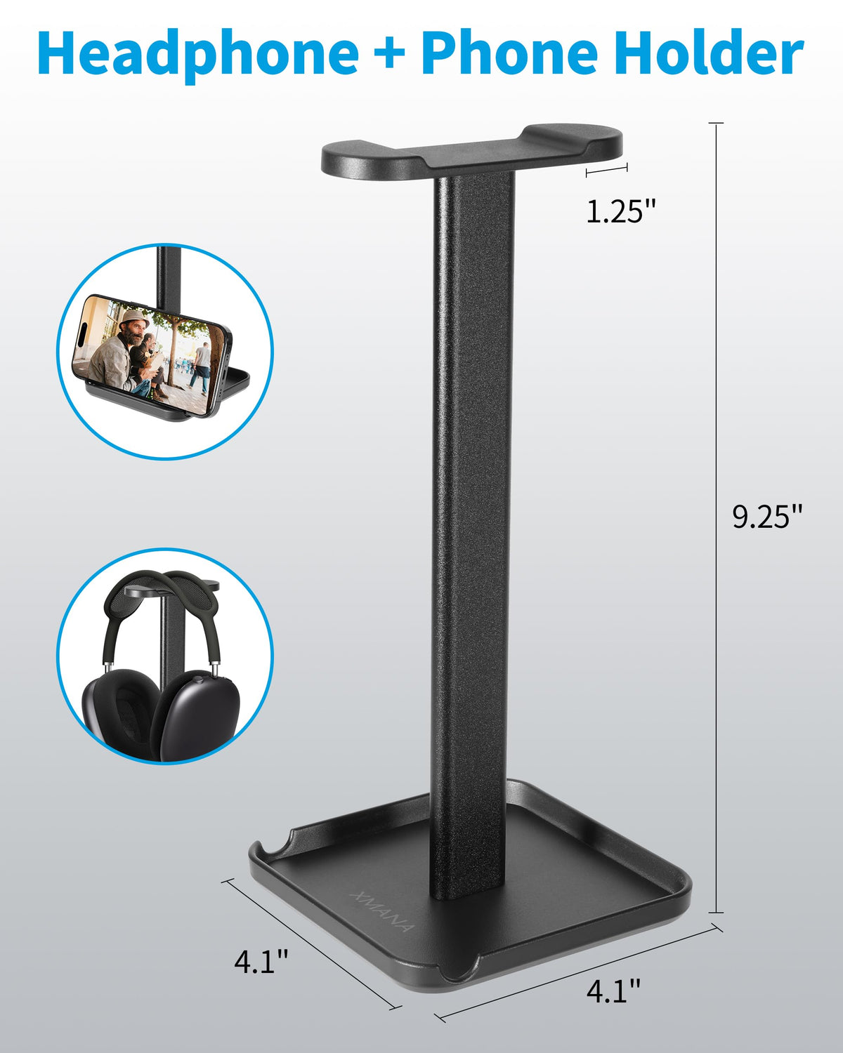 Xmana 2 In 1 Aluminum Headphone Stand & Phone Holder Rack Sleek, Sturdy & Ergonomic Design Gaming Headset Stand For Desk Organ