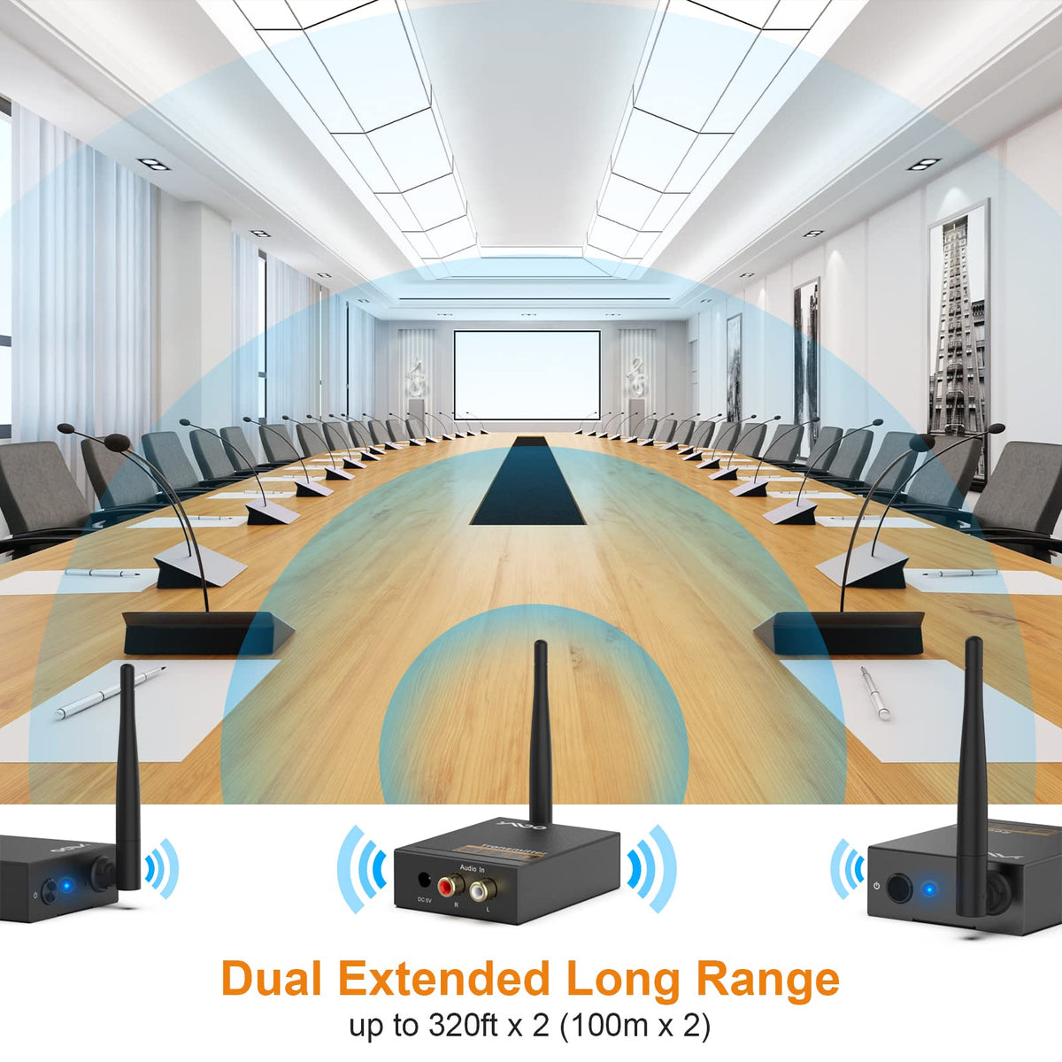 Ymoo 3 In 1 2.4Ghz Wireless Audio Transmitter And Receiver,2 Receivers For Two Speakers,20Ms Ultra Low Latency,48Khz/24Bit Hifi,