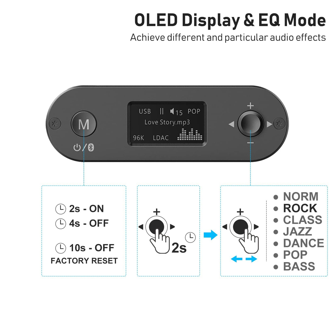 Ymoo Dac Bluetooth 5.1 Receiver,Ldac Aptx 30Ms Low Latency,Optical Coax Rca 3.5Mm Jack Hi-Res Input, Lossless Wireless Audio Ada