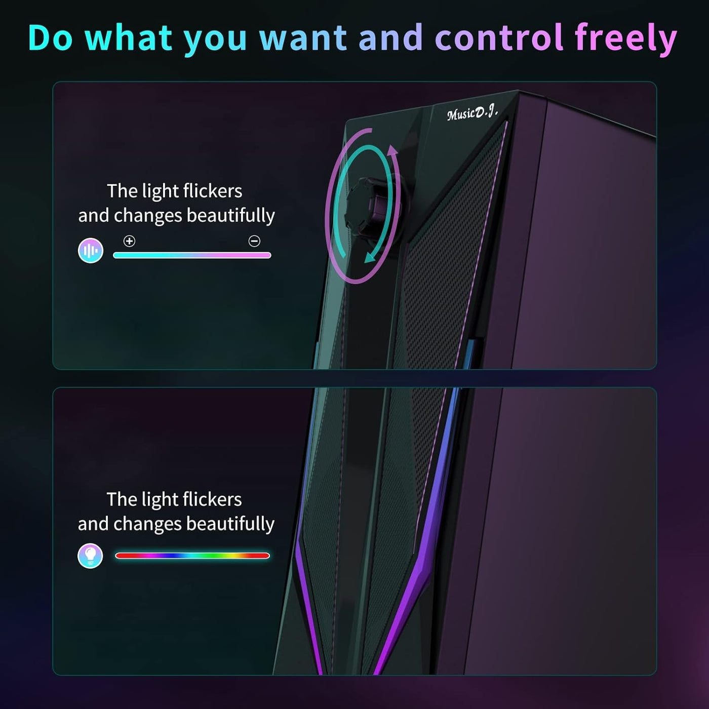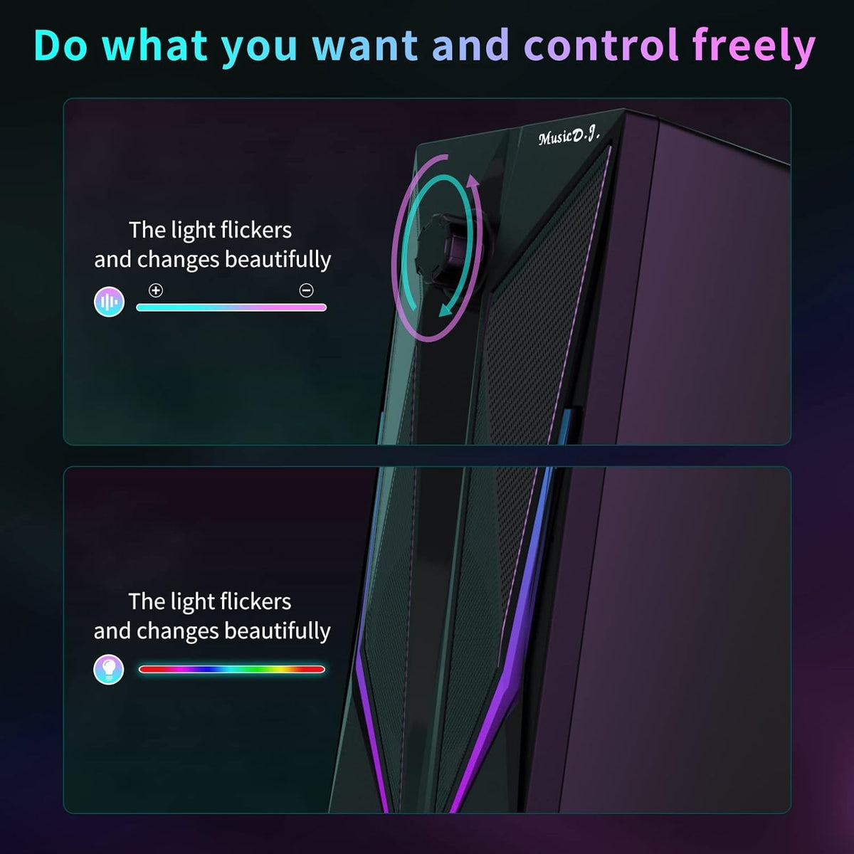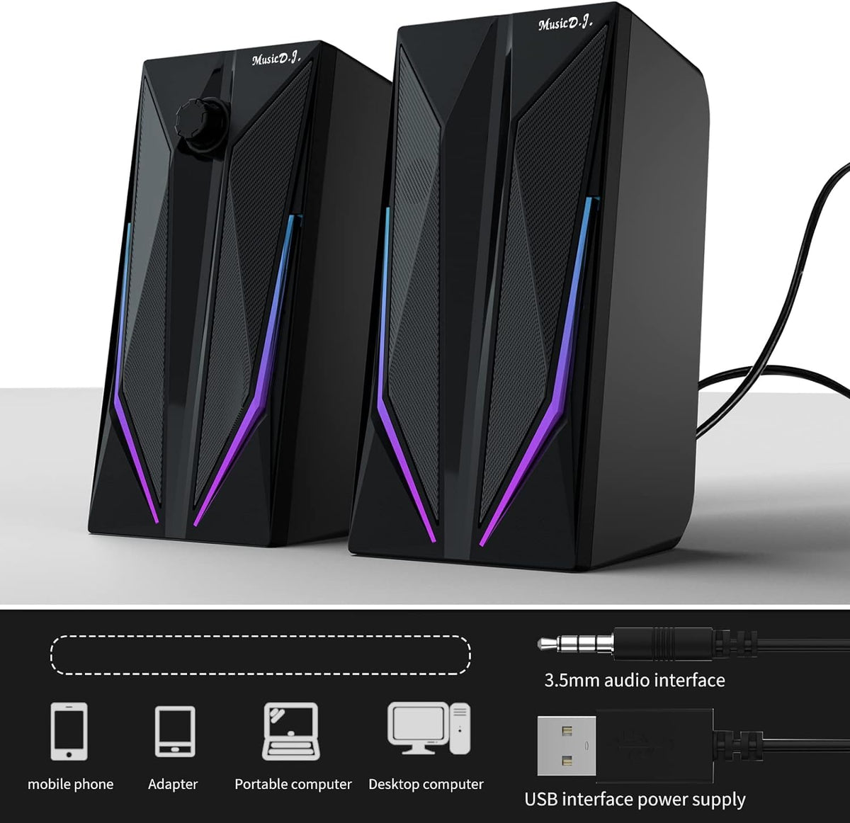 Zuo Xi Desktop Speakers, 2.0 Channel Pc Computer Hifi Stereo Gaming Speaker With Colorful Led Light Modes, Enhanced Bass And Eas