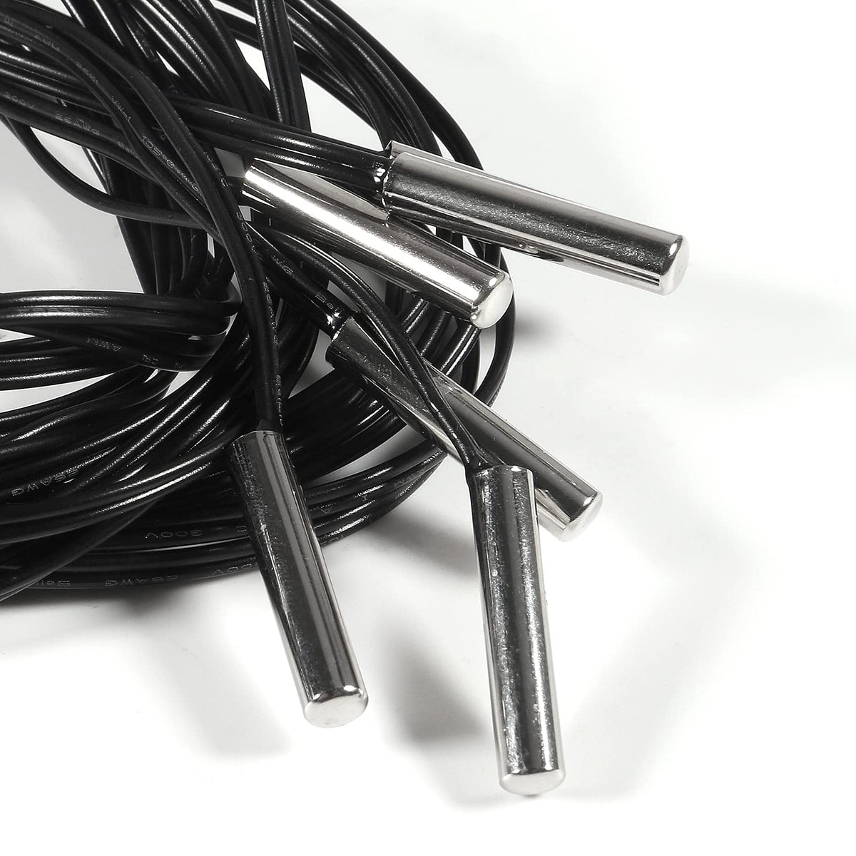 Aediko 6Pcs 10K Temperature Sensor Probe 1M Ntc3950 Thermistor Stainless Steel Temp Sensor Probe Digital Temperature Transmitter