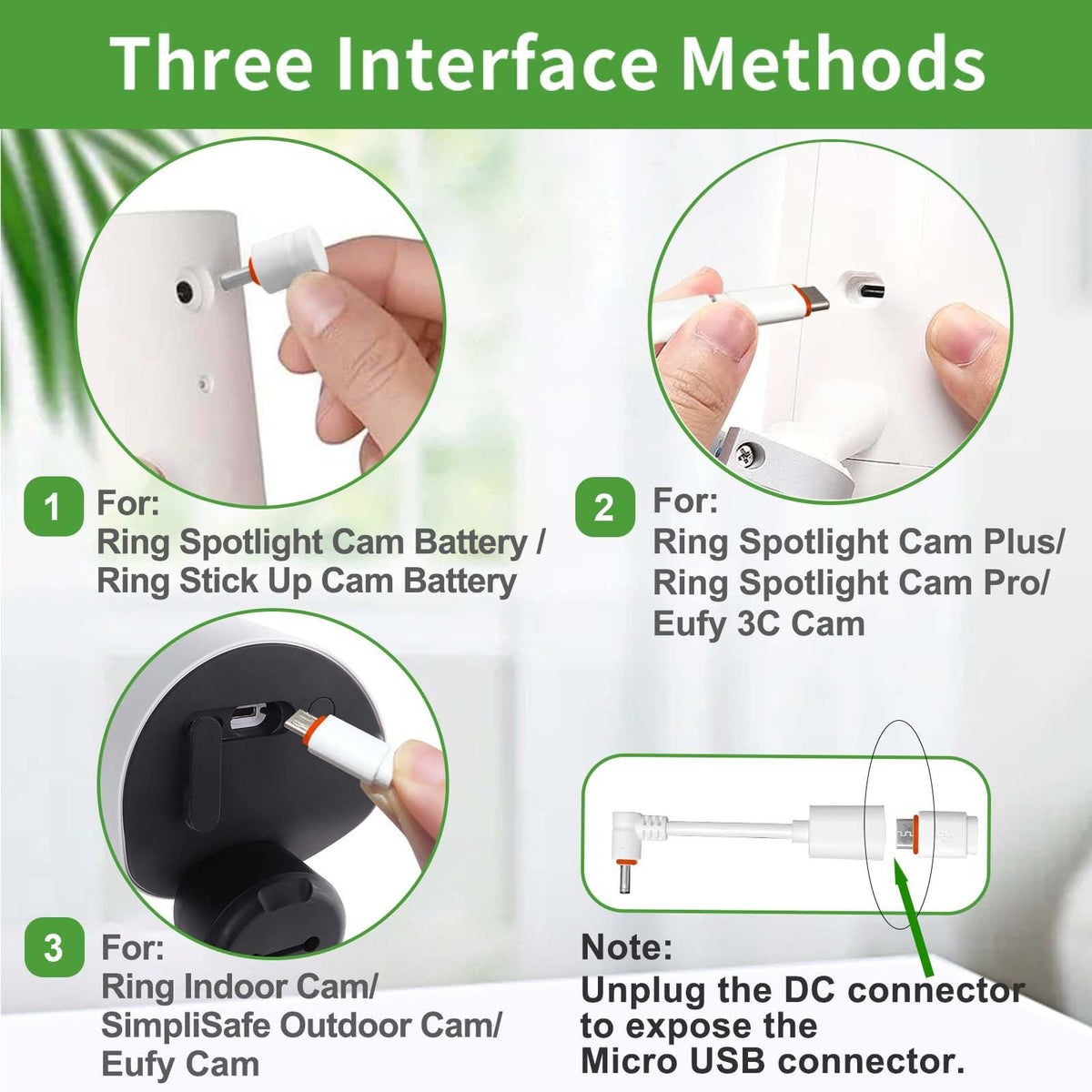 20Ft Power Cord With Adapter For Ring Camera, Ring Spotlight Cam Plus/Pro/Battery, Ring Stick Up Cam Battery, Simplisafe, Eufy,