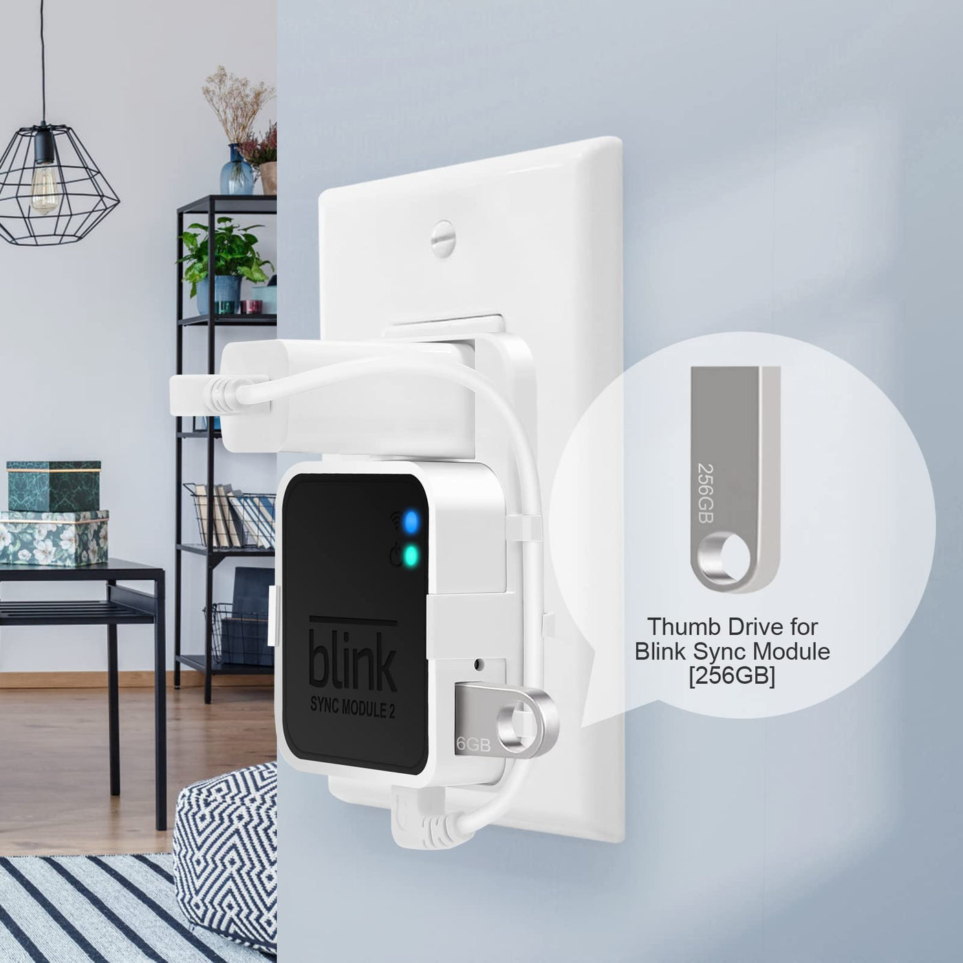 256Gb Usb Flash Drive For Local Video Storage With Outlet Mount For Blink Sync Module 2,Short Cable Save Space And Easy Move Mou