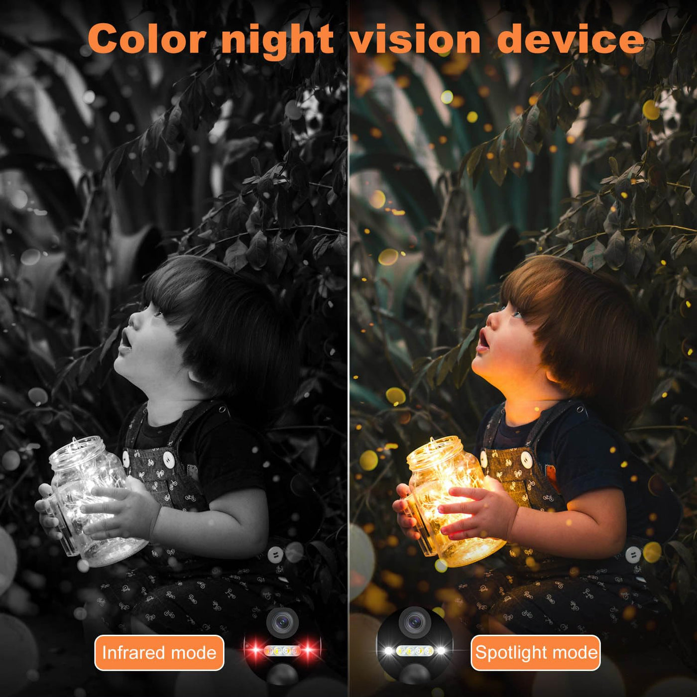 Q: What kind of image quality can I expect from this camera?A: The camera captures stunning 2K 3MP HD images both day and night, along with 4x digital zoom for detailed viewing.