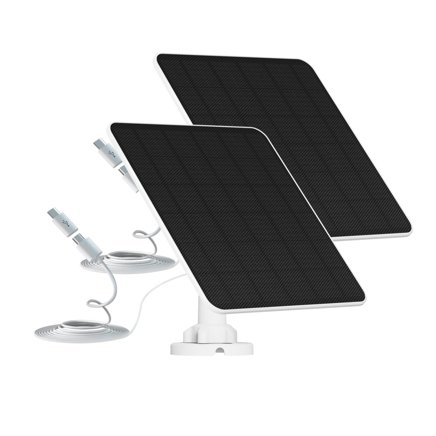6W Solar Panel For Security Camera, 5V Solar Panel Charger For Outdoor Rechargeable Battery Camera, Ip65 Waterproof Solar Panels With Adjustable Security Wall Mount, 9.8Ft Cable(2 Pack)