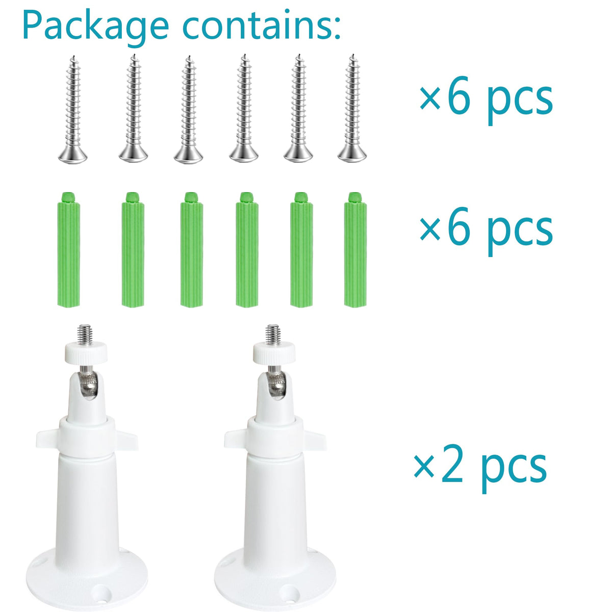 Adjustable Metal Wall Mount Compatible With Arlo, Arlo Pro 2/3/4/5/Ultra/Ultra 2, Ring Stick Up Cam, Ring Indoor Cam(1St Gen), Wyze Cam V3, 360 Degree Adjustable Screwless Bracket (2 Pack White)