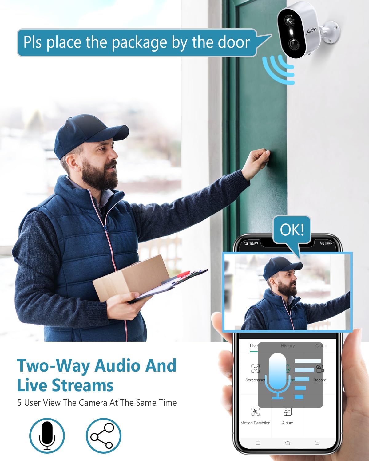 100% Wire-Free Security Camera: It Comes With Built-In Rechargeable Batteries Of Large Capacity; No Electrical Wiring Jobs,No Need To Call An Overpriced Contractor.You Can Install This Outdoor Camera Anywhere In Minutes.